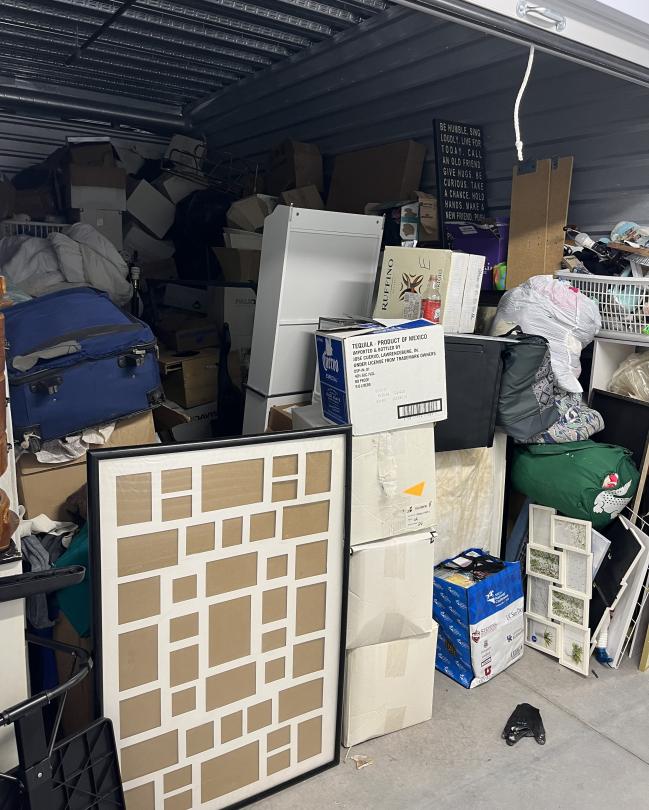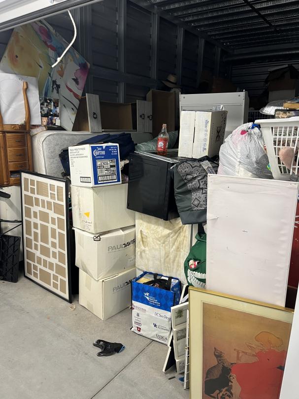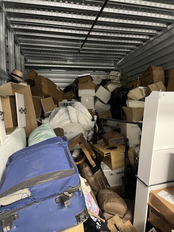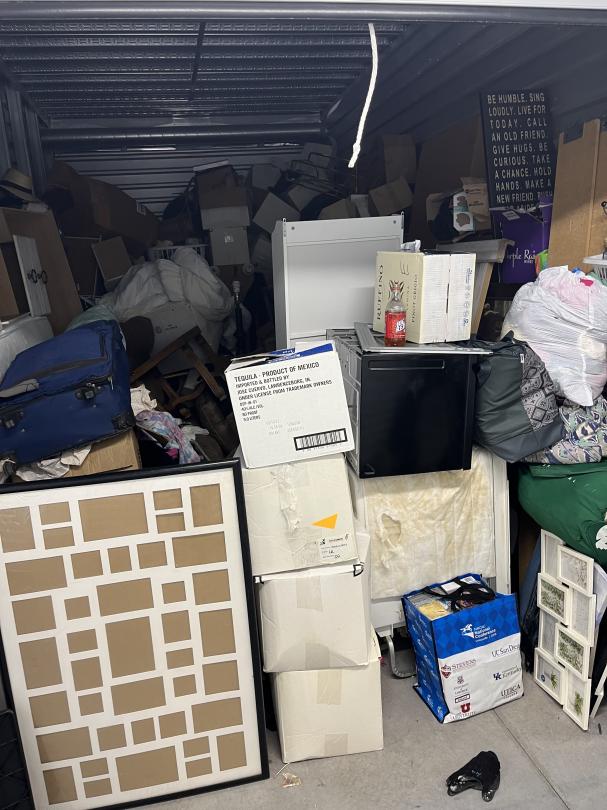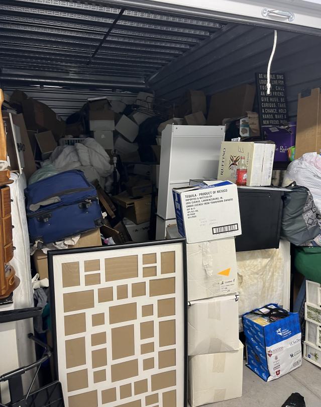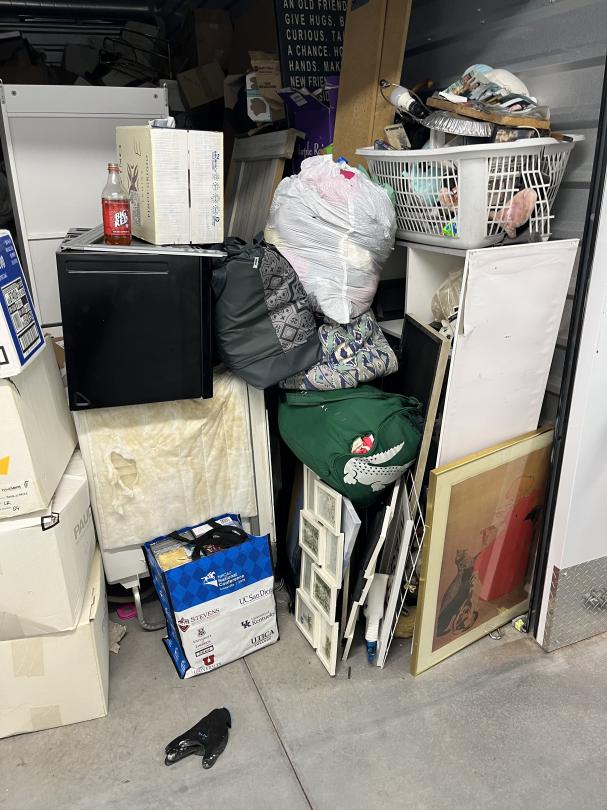 This unit appears to contain…mattress, pictures, bags, artwork, drawers, dressers, boxes, hats