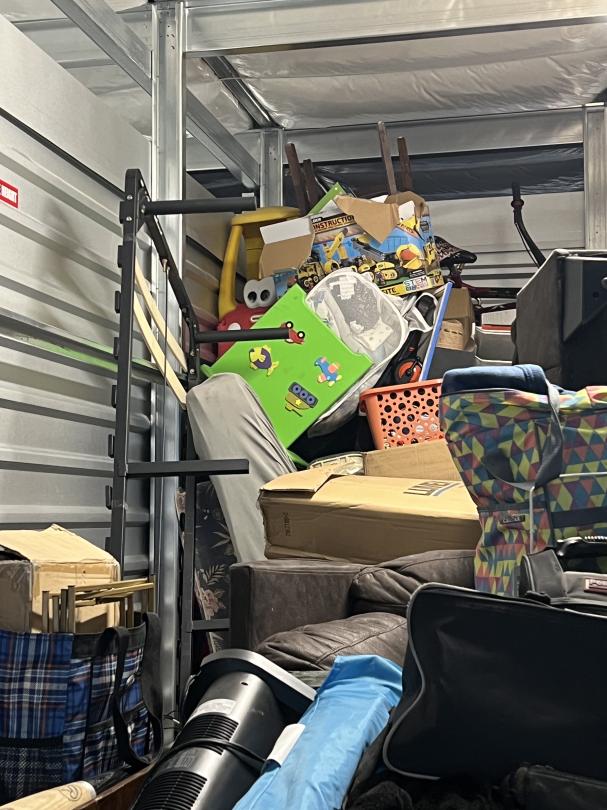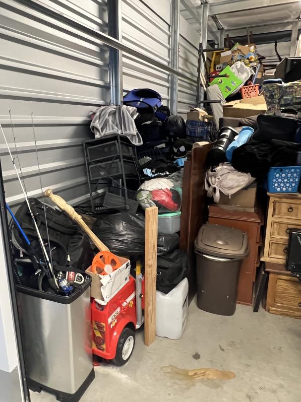 This unit appears to contain…Dresser, Mattress, Air Mattress, Boxes, Sports Gear, Toys & Bikes, Longboards, Luggage, Paintings, Bed Frame, Trash Can
