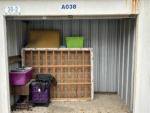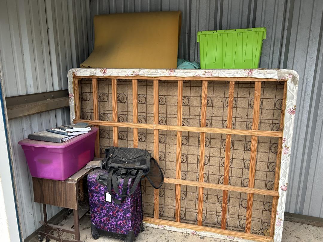 This unit appears to contain…furniture, plastic totes, and miscellaneous items.