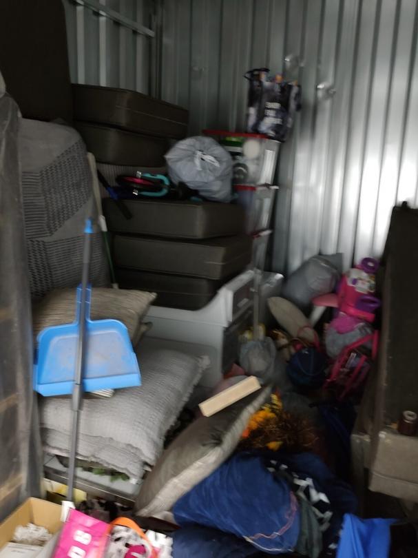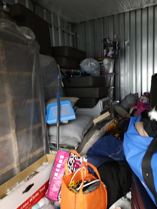 This unit appears to contain…THIS UNIT APPEARS TO CONTAIN: Bikes,Washing Machine,Dryer,Couches,Mattresses,Box Springs,Bed Frame,Plastic Bags,Plastic Containers,Suitcases,Baby Furniture,Toys