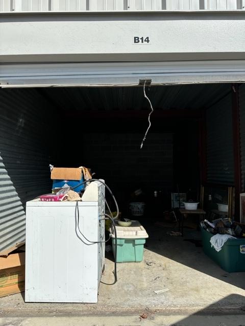 This unit appears to contain…Washer, Pictures, Dvd's, Incline Bench, Household Items