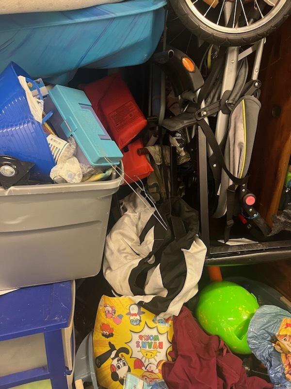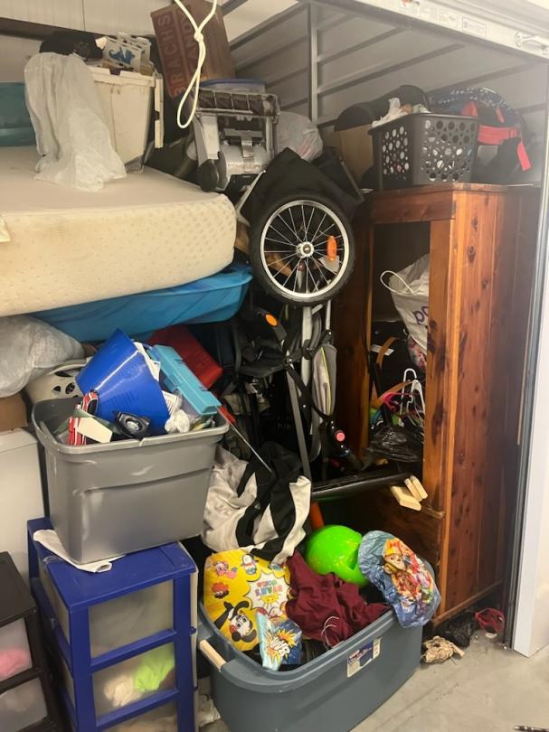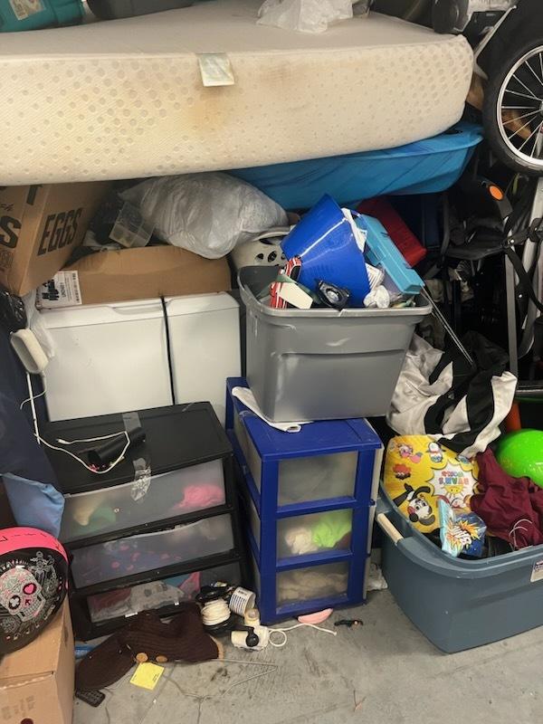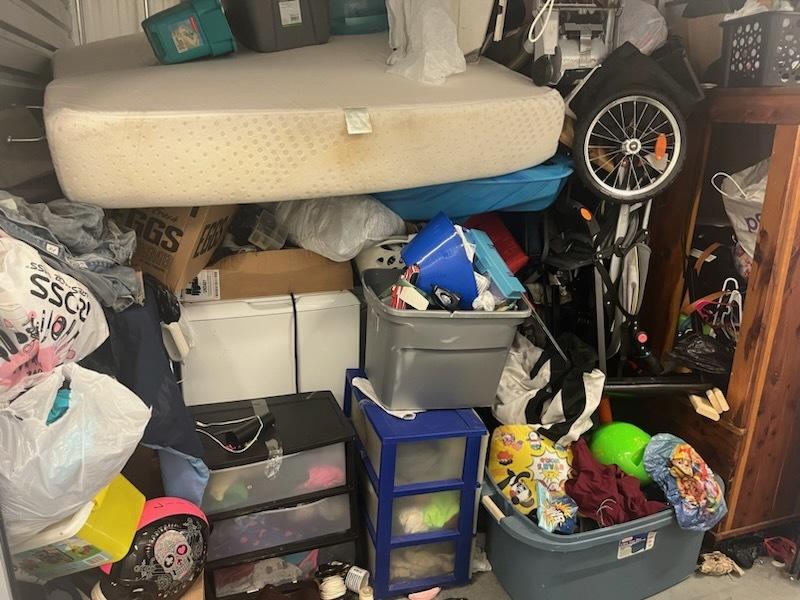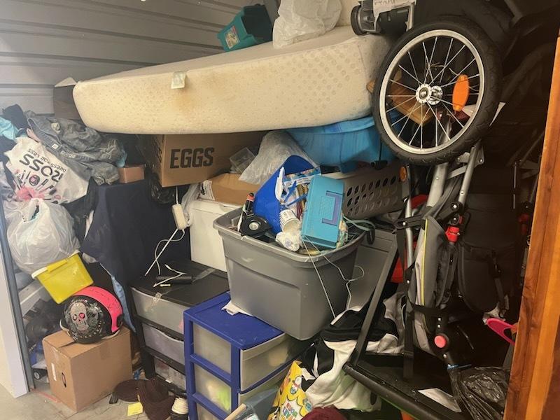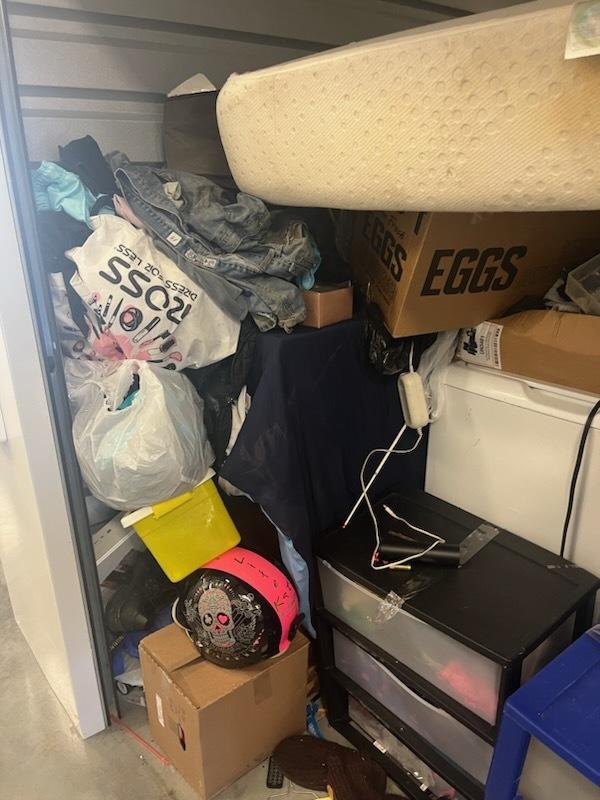 This unit appears to contain…Auto Parts, Washing Machine, Dryer, Mattresses, Kitchenware, Plastic Bags, Plastic Containers, Misc. Boxes, Clothing, Cleaning Supplies and more...
