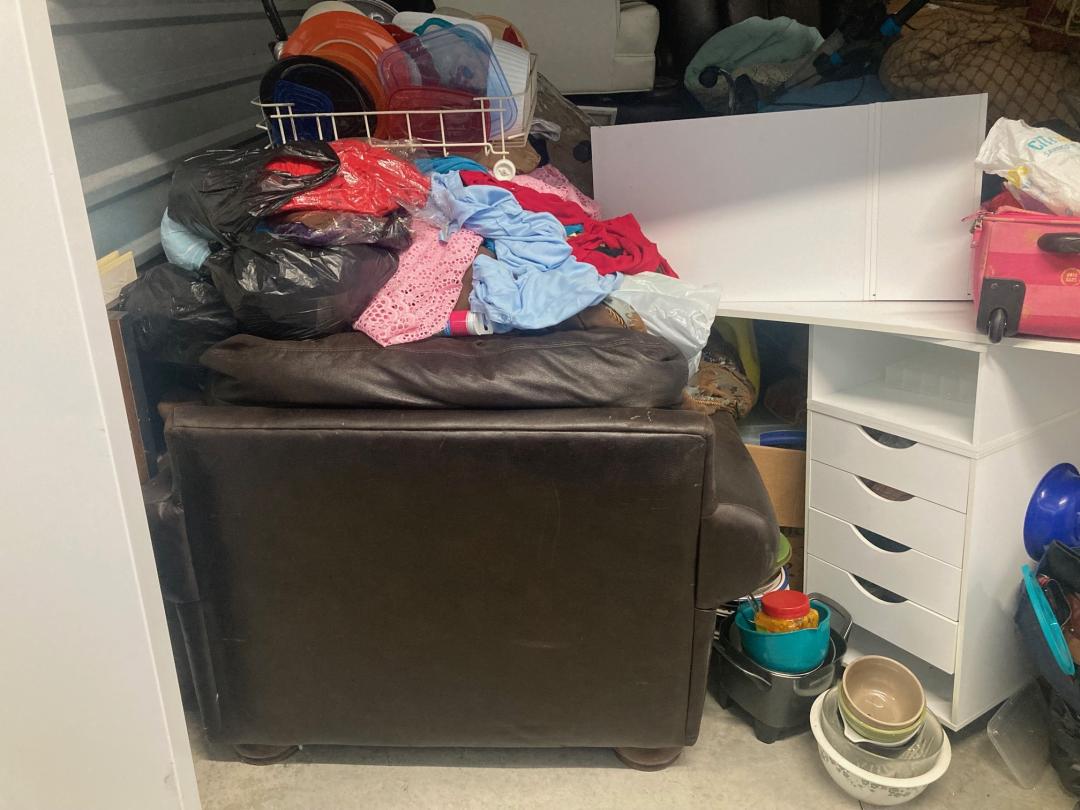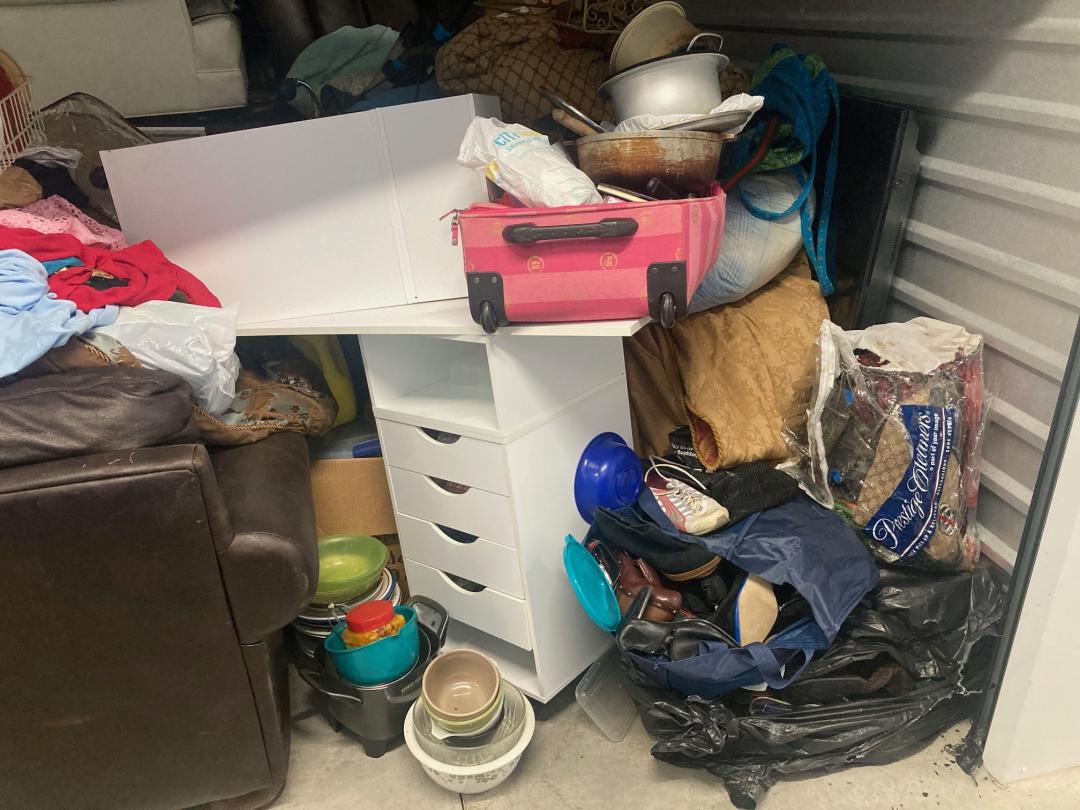 This unit appears to contain…Furniture Dishes Boxes Bags Clothes Shoes Various Items