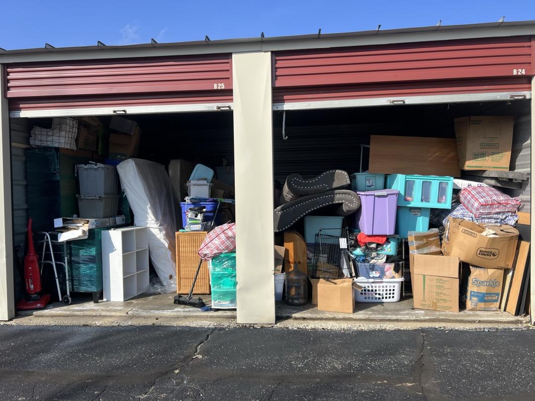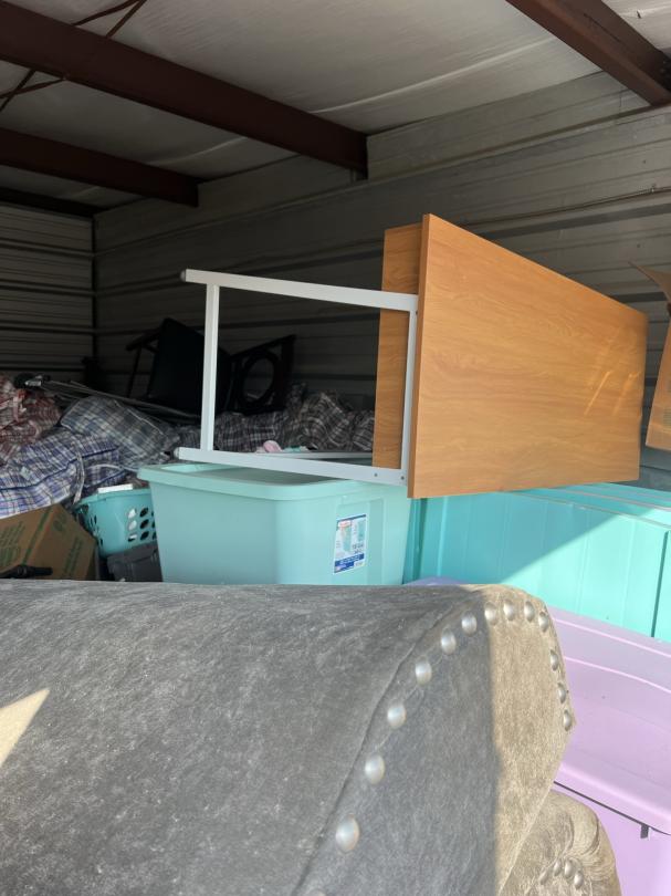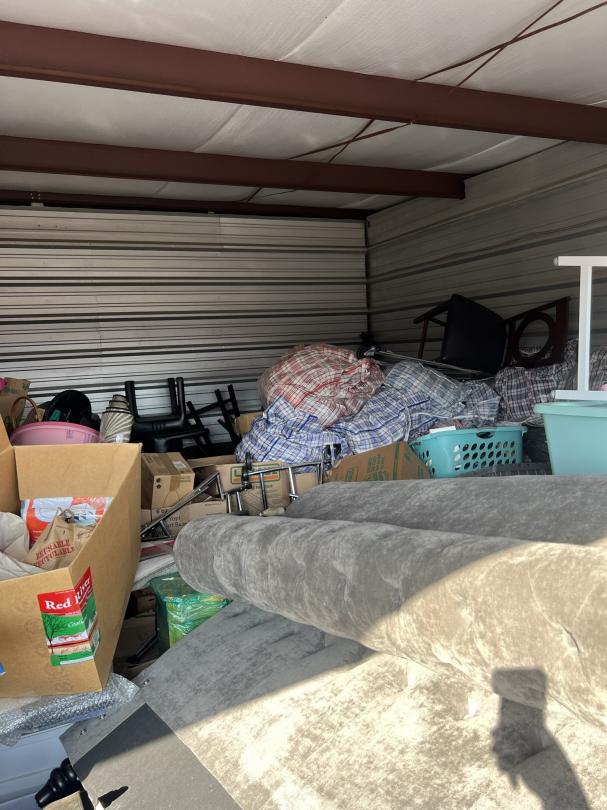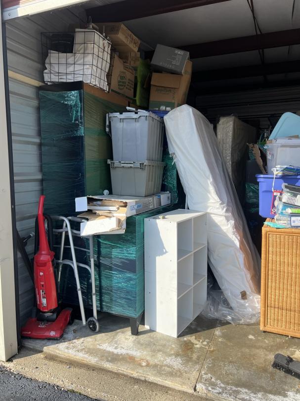 This unit appears to contain…Boxes, tubs, furniture, organizers, mattress, chairs, bags, headboard/footboard