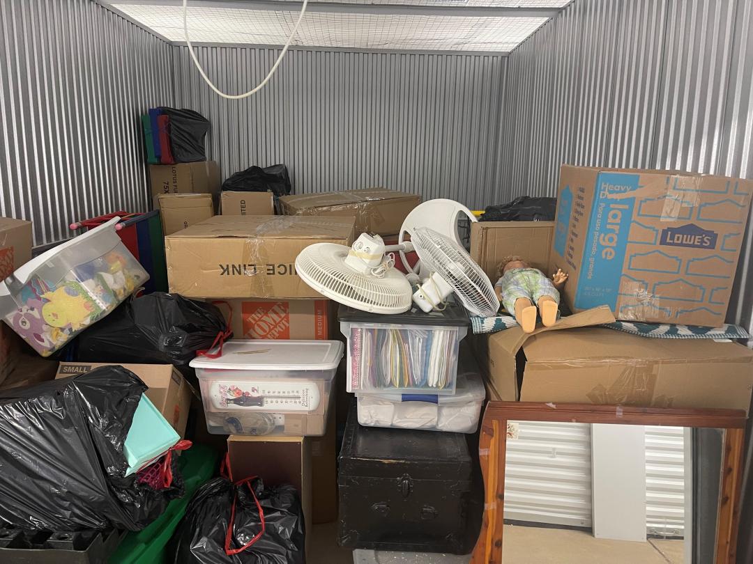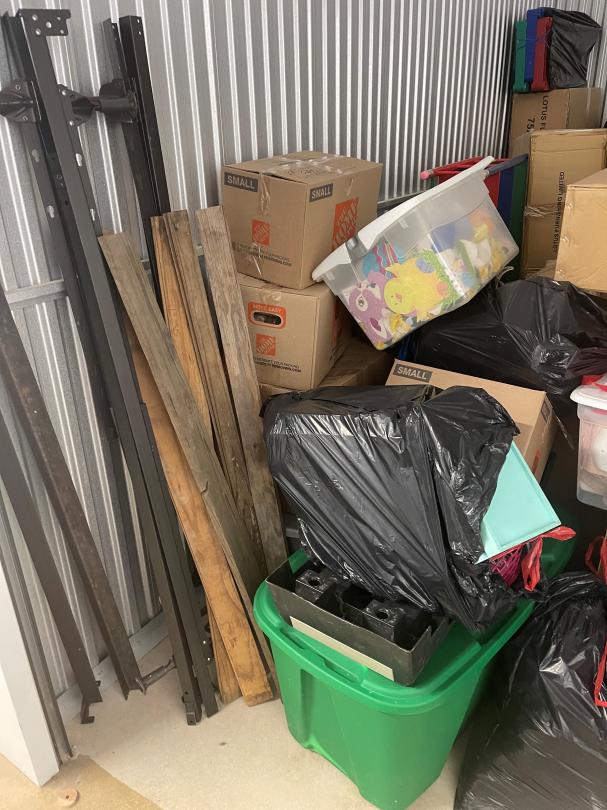 This unit appears to contain…Shelves, Bed frame, Decor, Bags, Containers, Boxes, Misc. Items