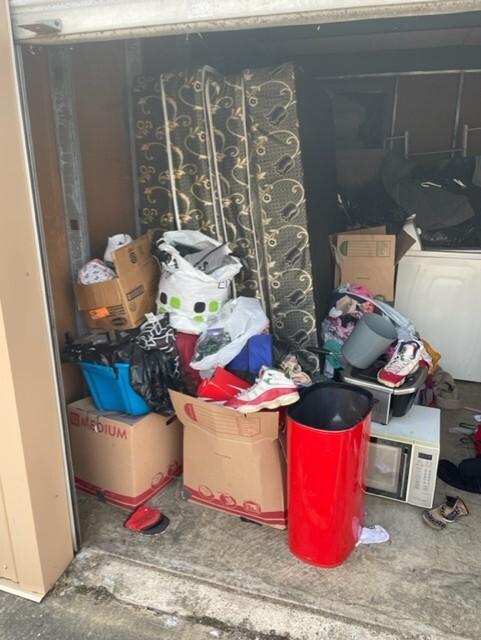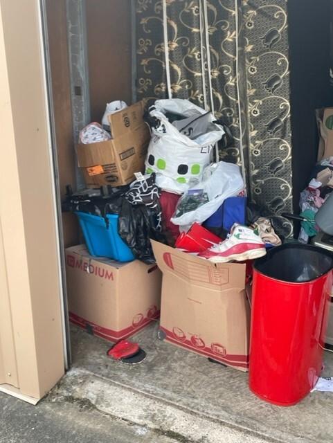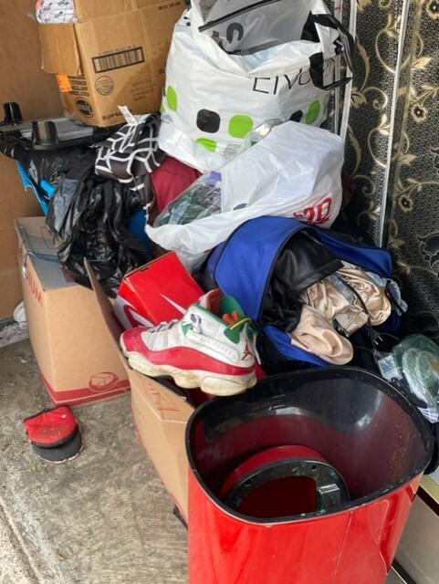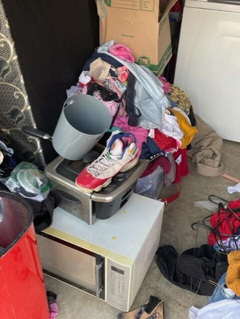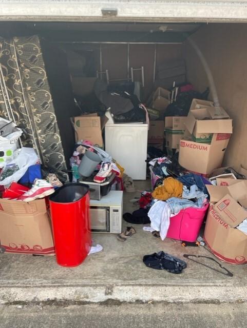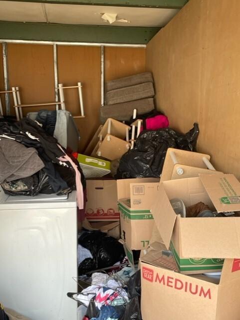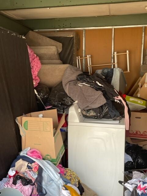 This unit appears to contain…Washing Machine, Mattresses, Boxes
