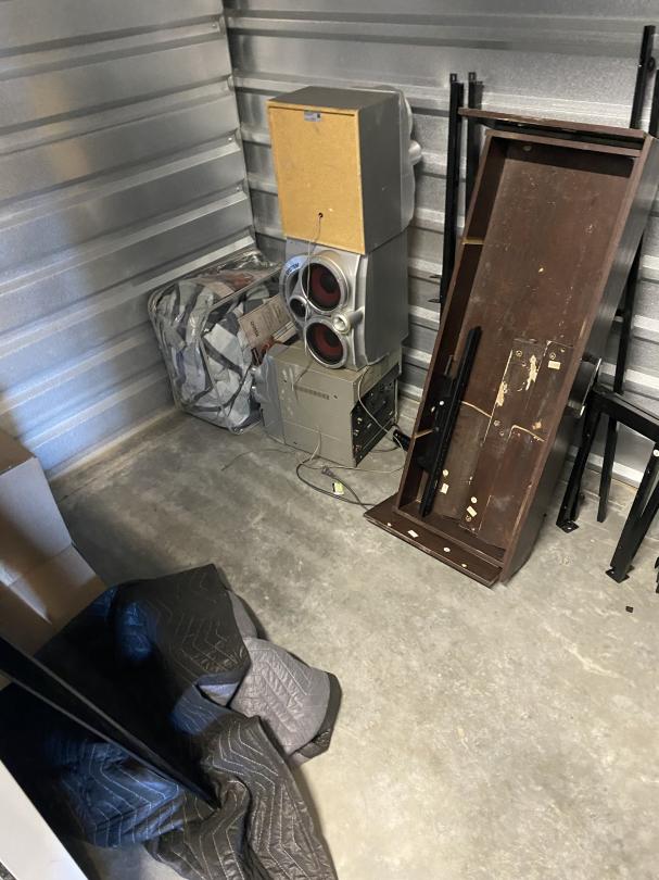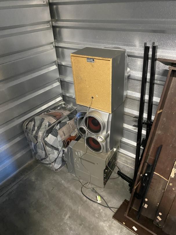 This unit appears to contain…Boxes, Mirror, Speakers, Amp, Bed Spread, Wood