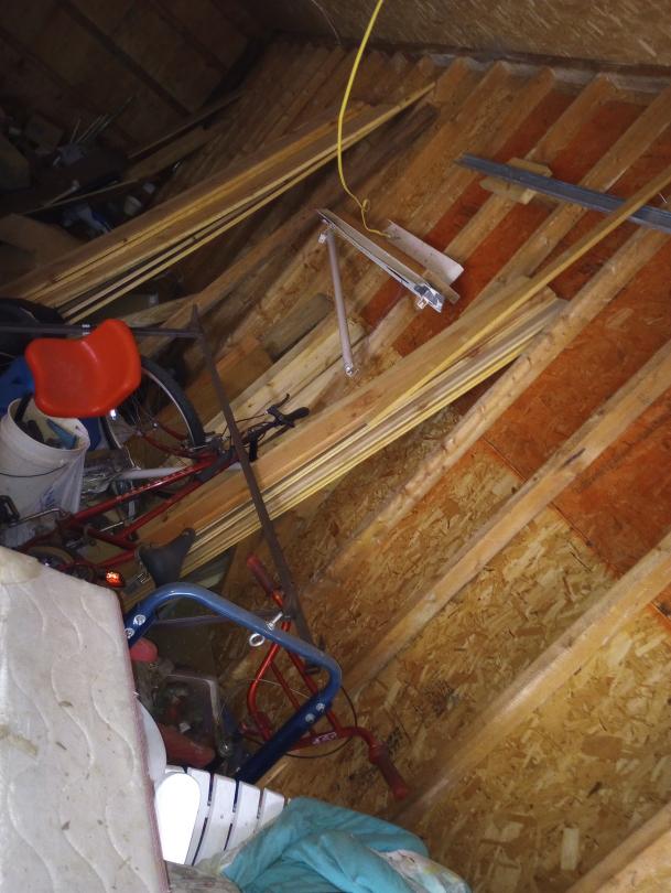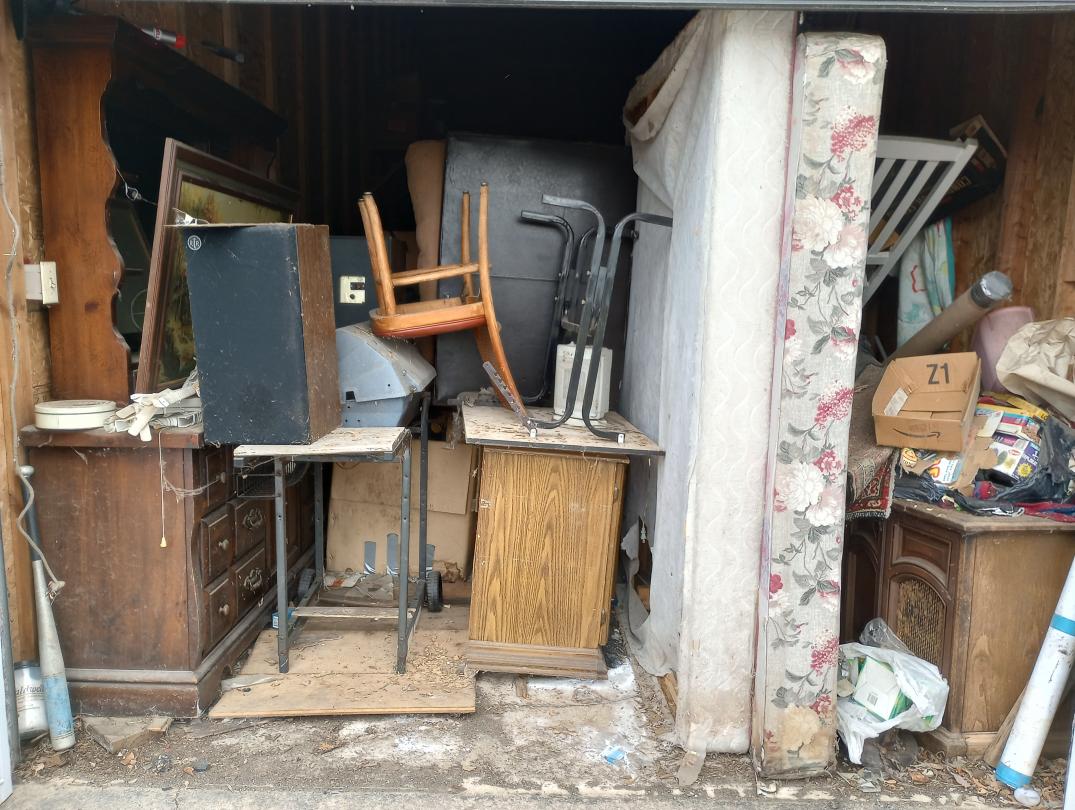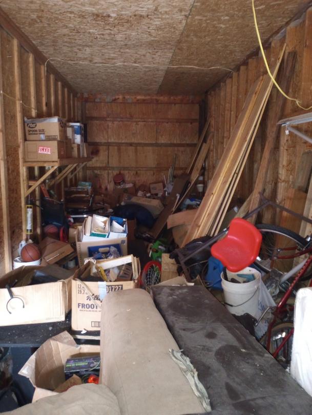 This unit appears to contain…In this unit there are some bikes, a dirt bike, some dressers , radio equipment, desks, tools , and some household items.