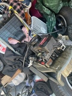 This unit appears to contain…plastic bags, plastic containers, misc boxes, clothing, toys, dartboard, decore