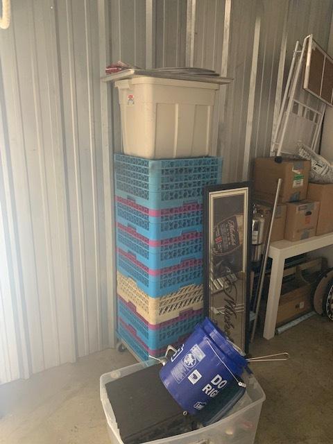 This unit appears to contain…CRATES, BOXES, WINE CUPS, TUBS, PRINTER.