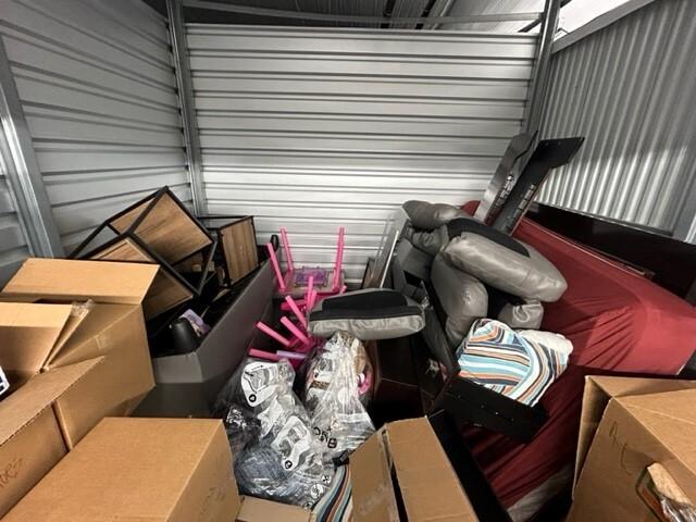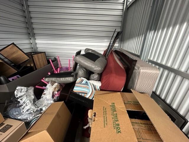 This unit appears to contain…Couches,Mattresses,Box Springs,Bed Frame,Dressers or Armoire,Nightstands,Chairs,Tables,Decor,Plastic Bags,Misc. Boxes,Clothing,Misc. Items,Purses,Baby Furniture,Toys