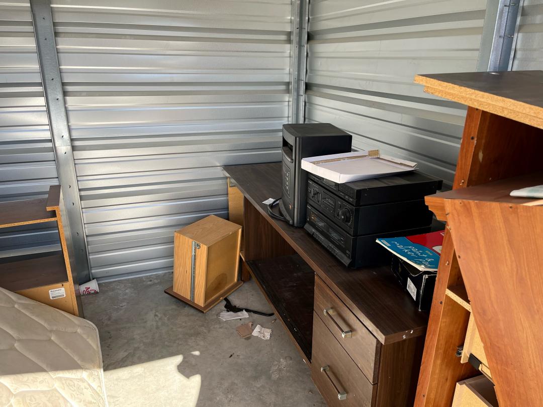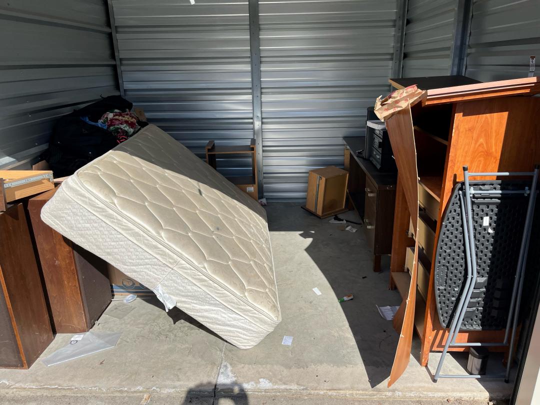 This unit appears to contain…Mattresses,Dressers or Armoire,Tables,TV Stand,Misc. Boxes,Clothing