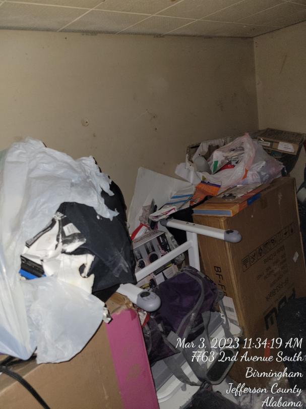 This unit appears to contain…Computer desk, boxes, bags, MISC