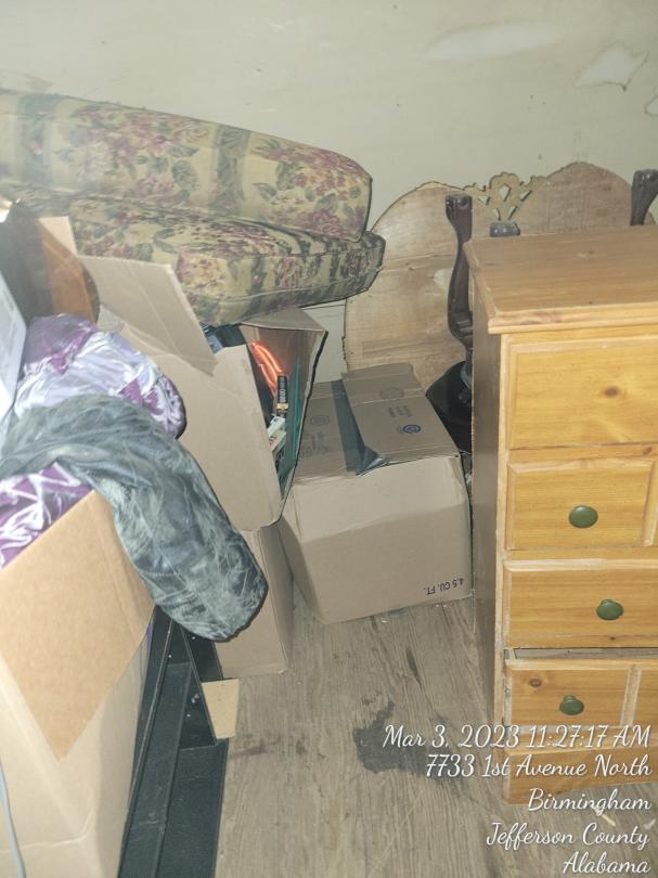 This unit appears to contain…Couch, end tables, boxes, MISC