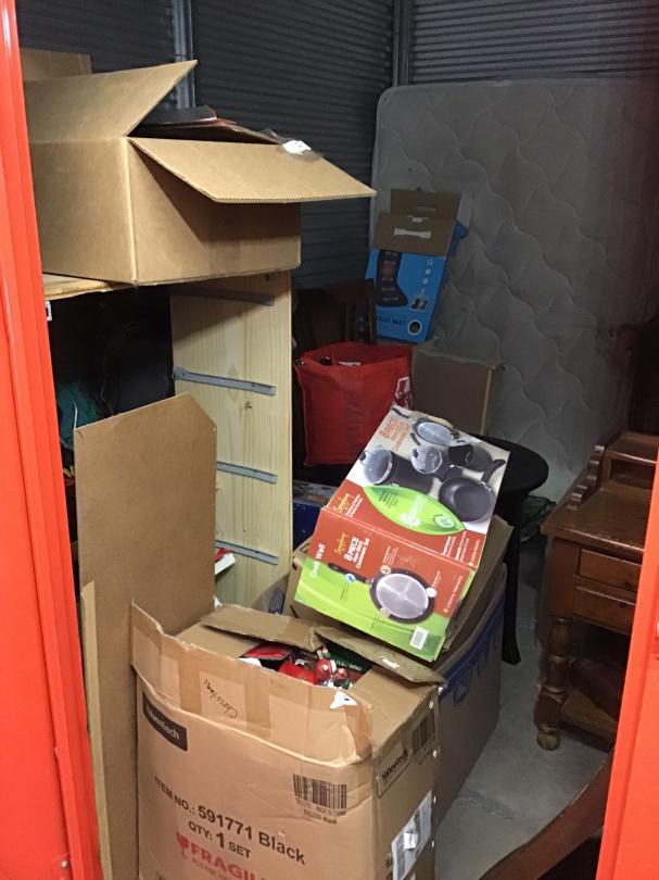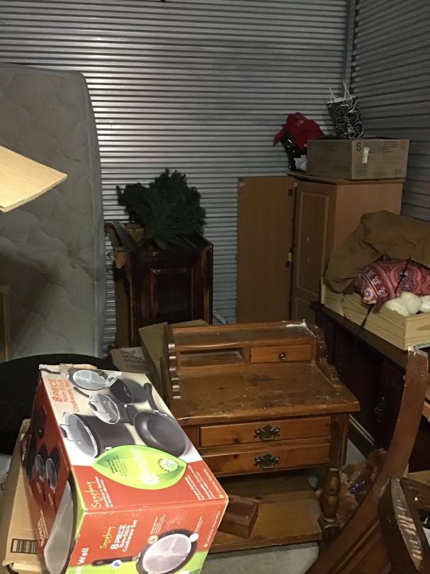 This unit appears to contain…10x10x6.5 interior non climate controlled unit appears to have furniture, night stand, mattress, boxes and other miscellaneous items