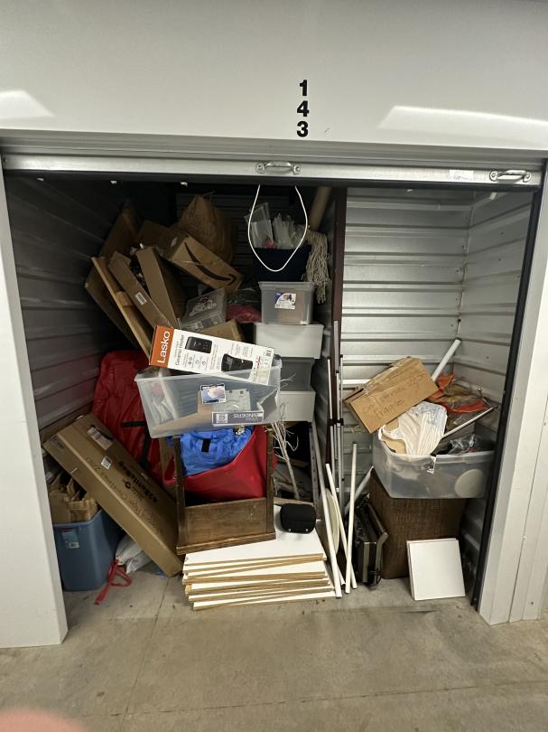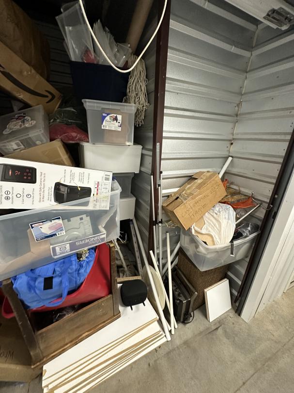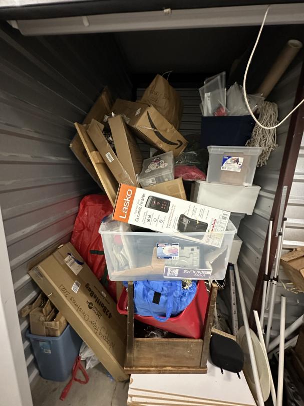 This unit appears to contain…Christmas tree, Christmas items, furniture, containers