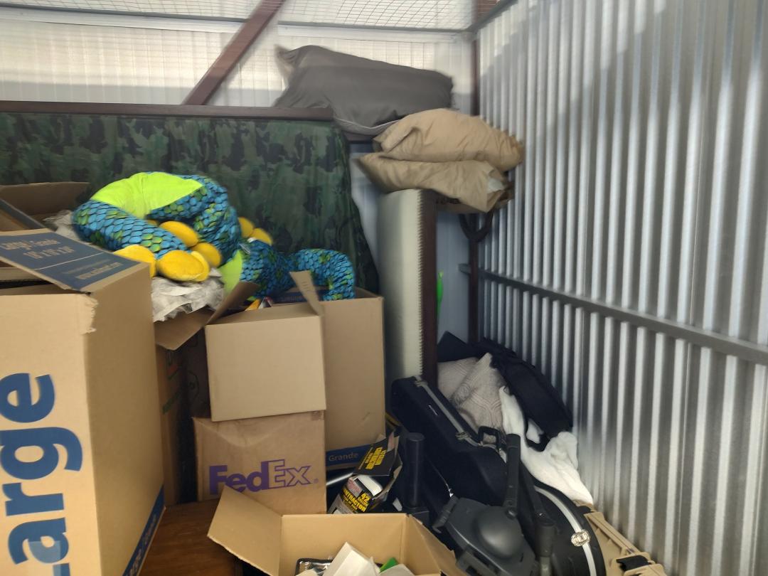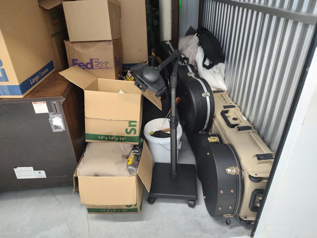 This unit appears to contain…2 Guitar cases, furniture, large case, stuffed animals, boxes, misc. items