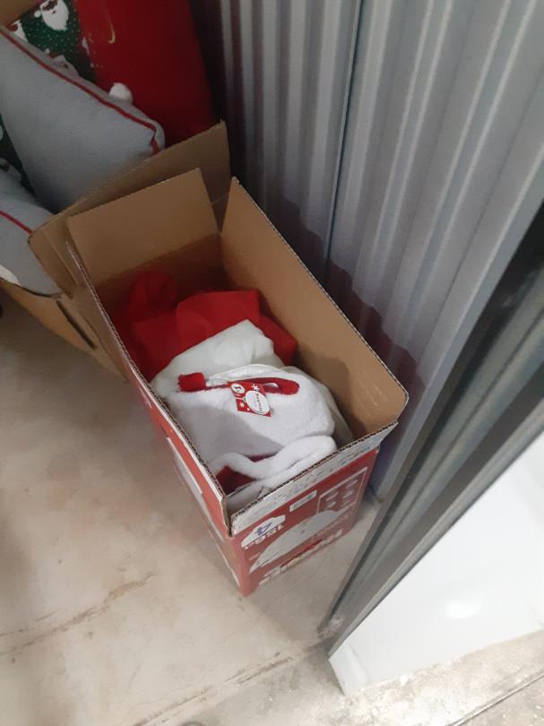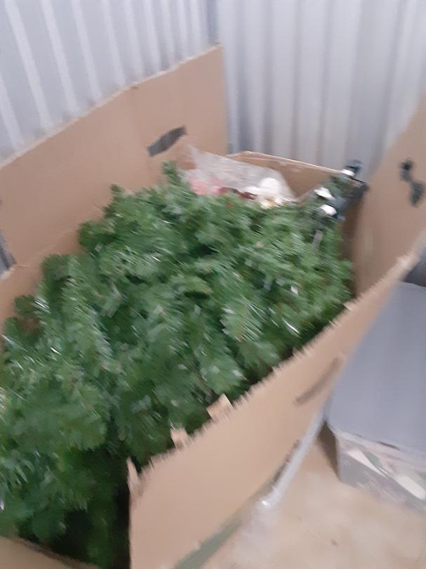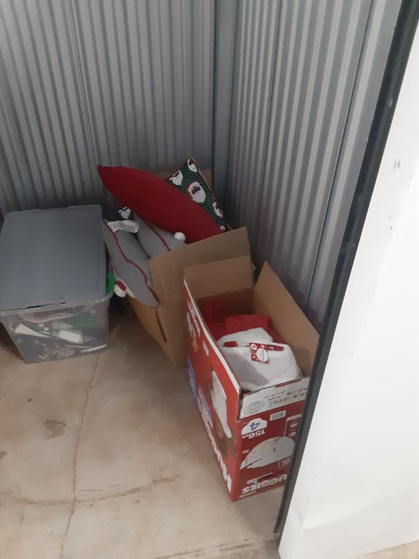 This unit appears to contain…Christmas decor. Tree, stockings, etc.
