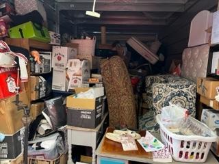 This unit appears to contain…Couch, Mattress, Shelf, Boxes, Totes, Desk