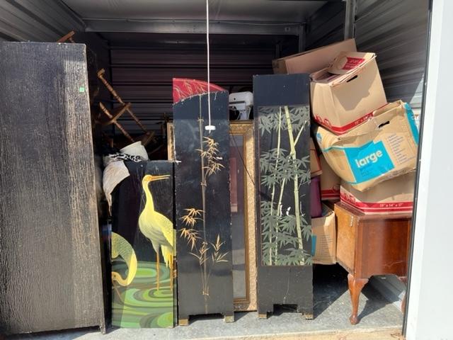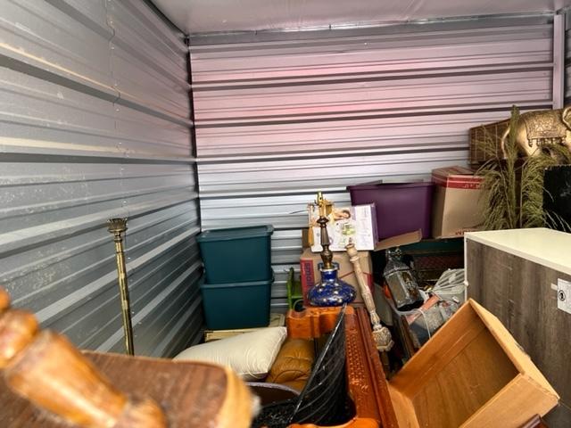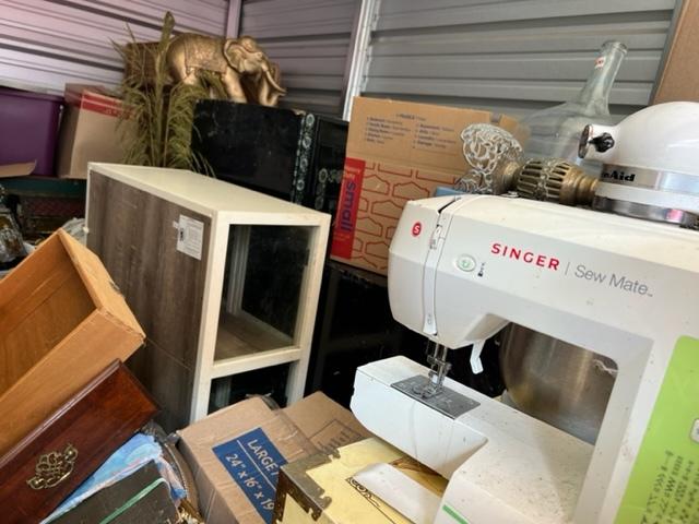This unit appears to contain…Furniture, Sewing Machine, Mixer, Boxes, Totes, Lamps, Wall Art, Shelves. Misc Personal Items