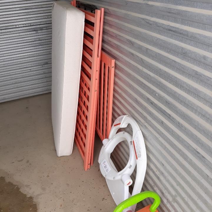 This unit appears to contain…This unit appears to contain a small bed, can, misc.