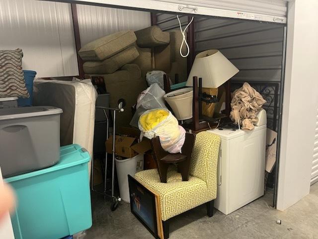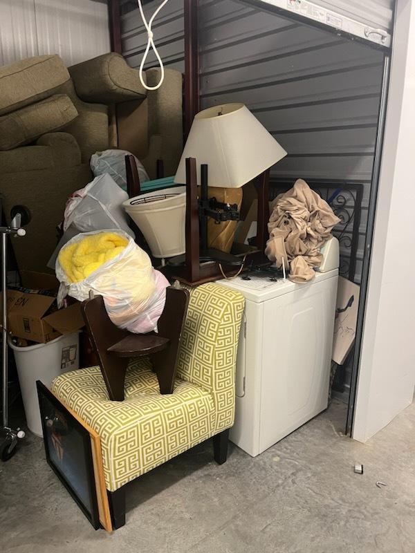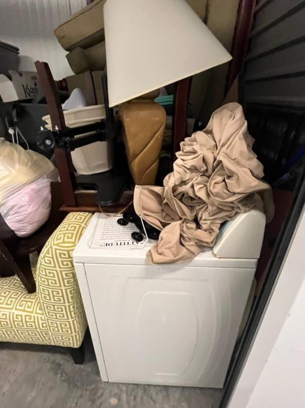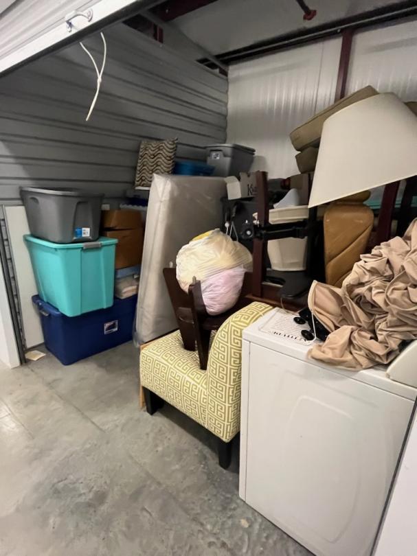 This unit appears to contain…Washing Machine, Dryer, Couches, Mattresses, Lamps, Chairs, Tables, Plastic Bags, Plastic Containers, Misc. Items, Artwork and more....