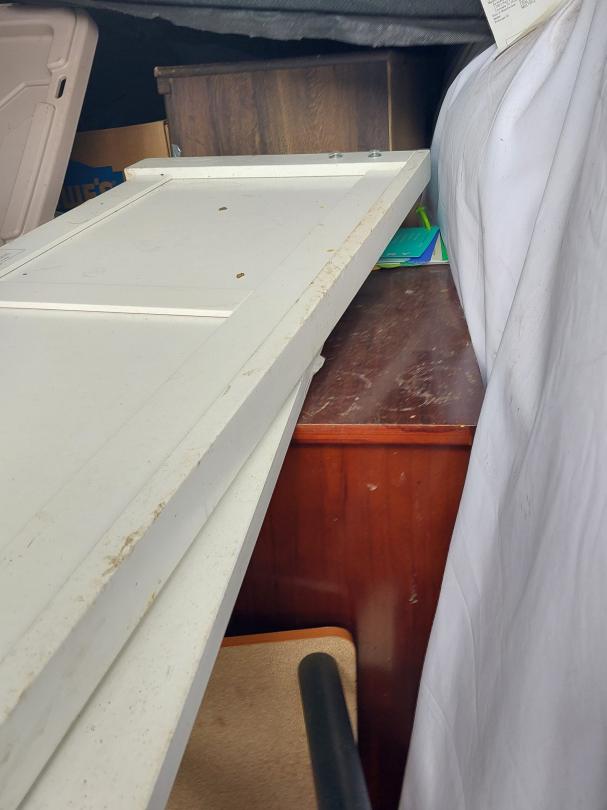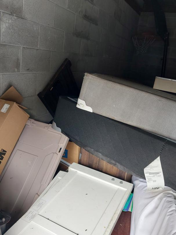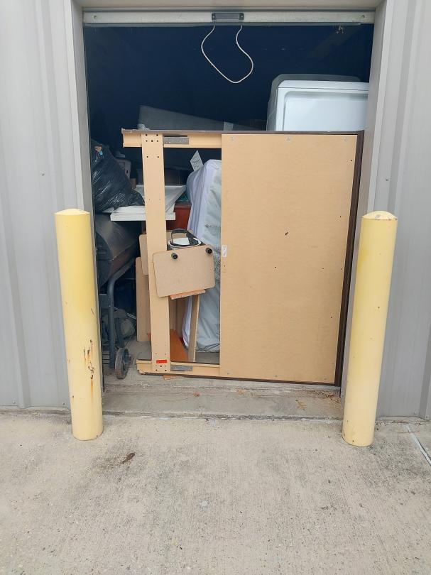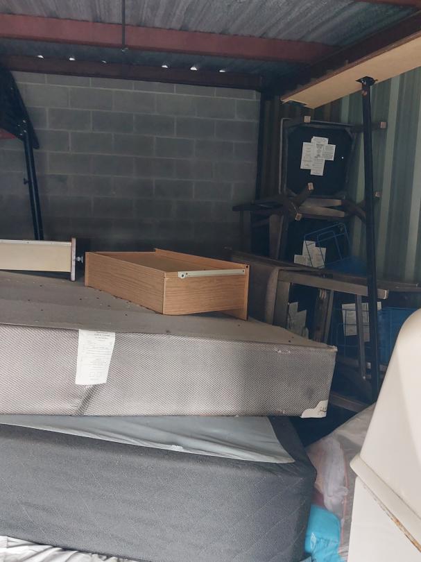 This unit appears to contain…10x20x8 Bags, Boxes, Chairs, Dresser, Mattress, Head Board, BBQ Grill, Washer, Dryer, Box Spring, Hard Hat, Totes, Pet Carrier, Shelfing