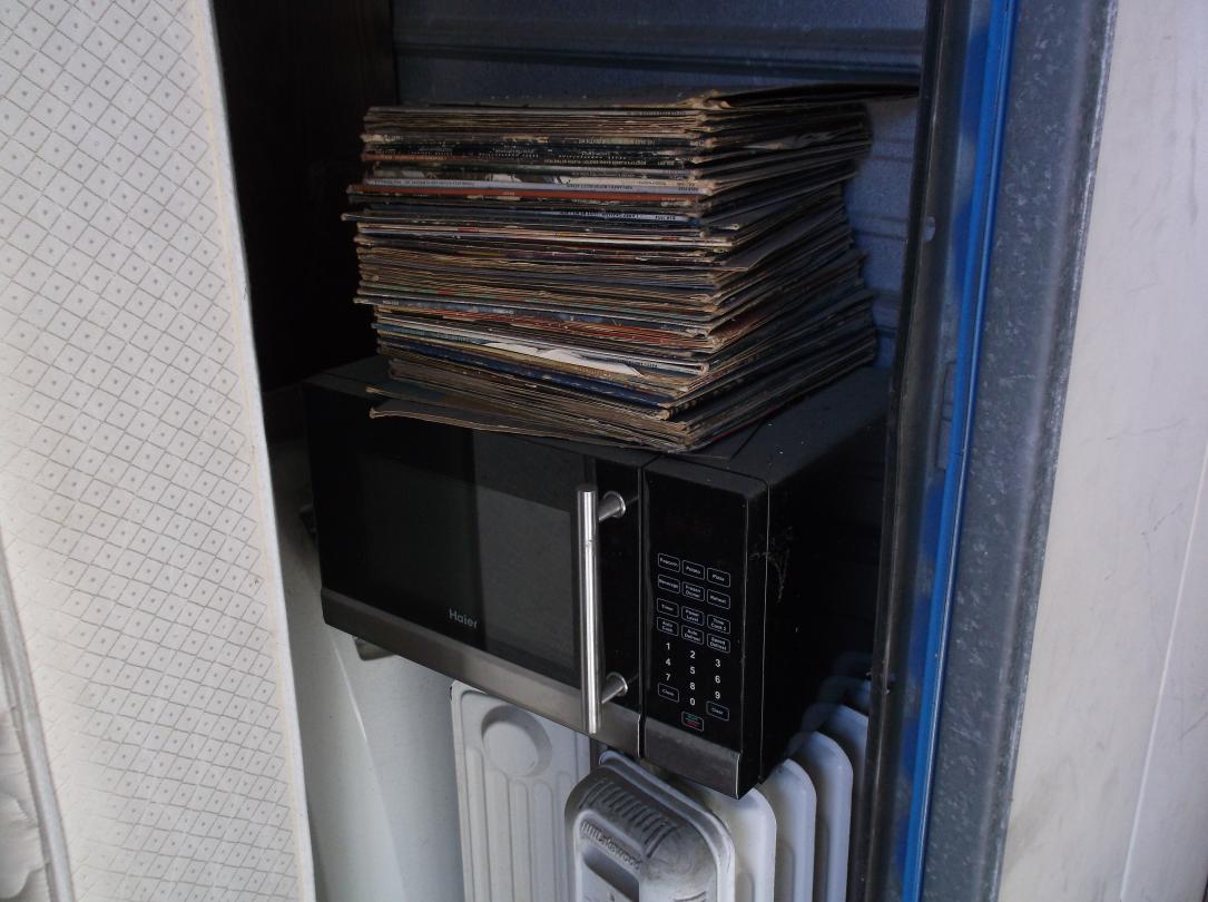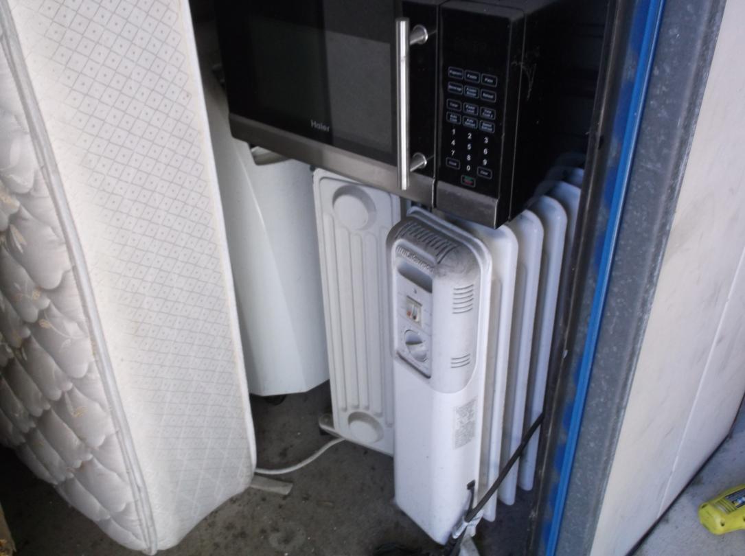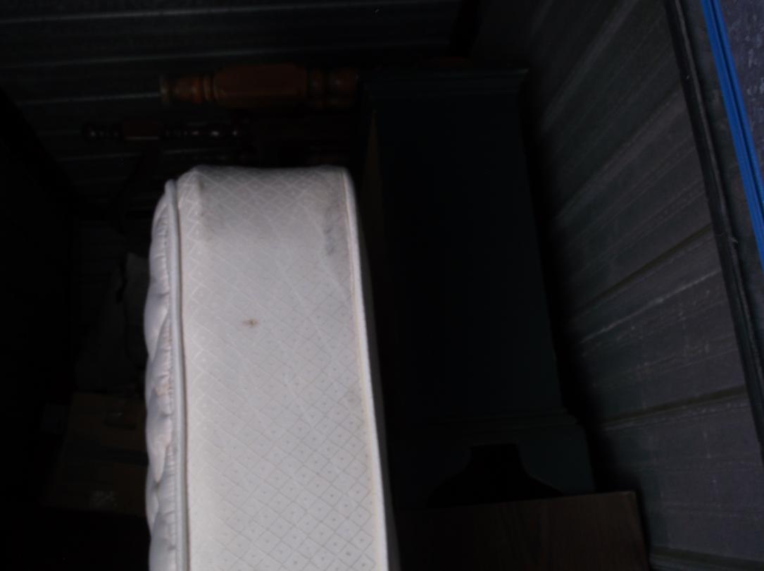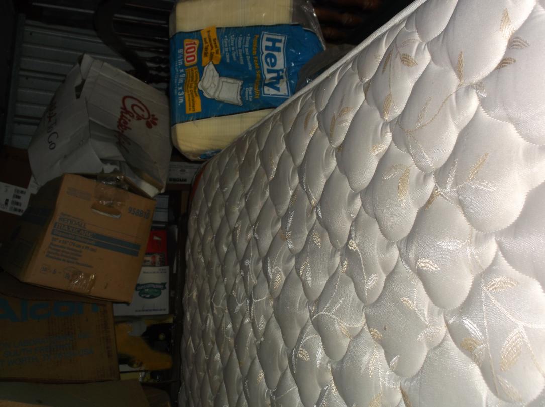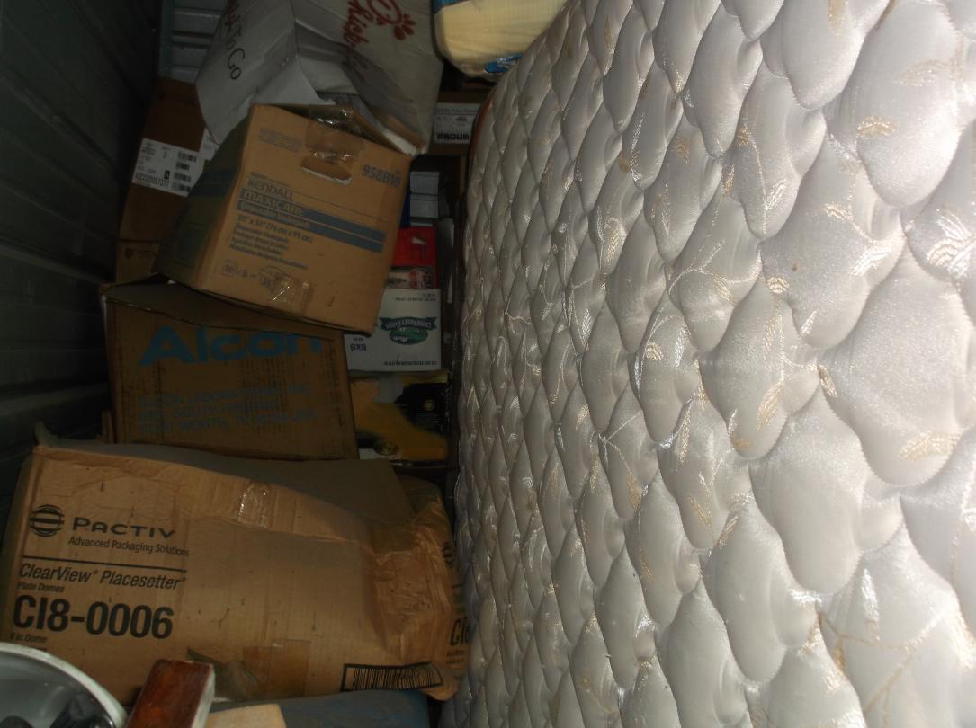 This unit appears to contain…Record Albums, Mattress, Box Springs, Microwave, Heaters, Dresser, End Tables, Bed, Chest, 20+ Boxes