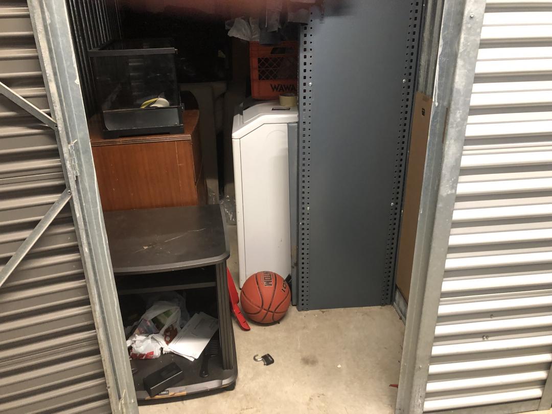 This unit appears to contain…Bags, Boxes, Dresser, Table, Washer, Shelving, Cushions