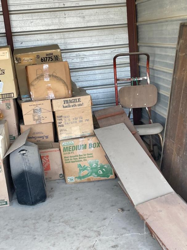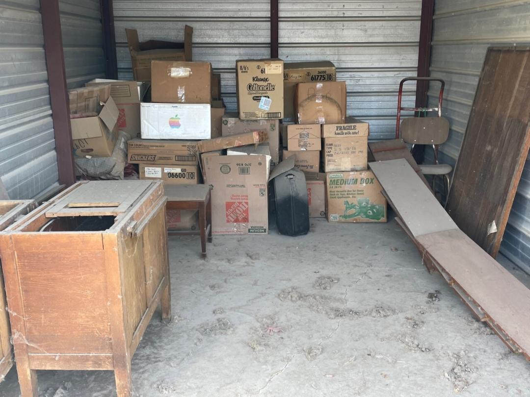 This unit appears to contain…Unit appears to contain, bench, boxes, chairs, dolly, boxes,
