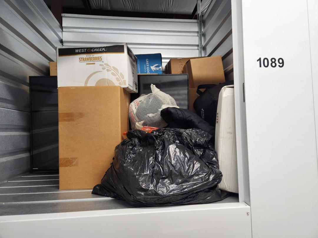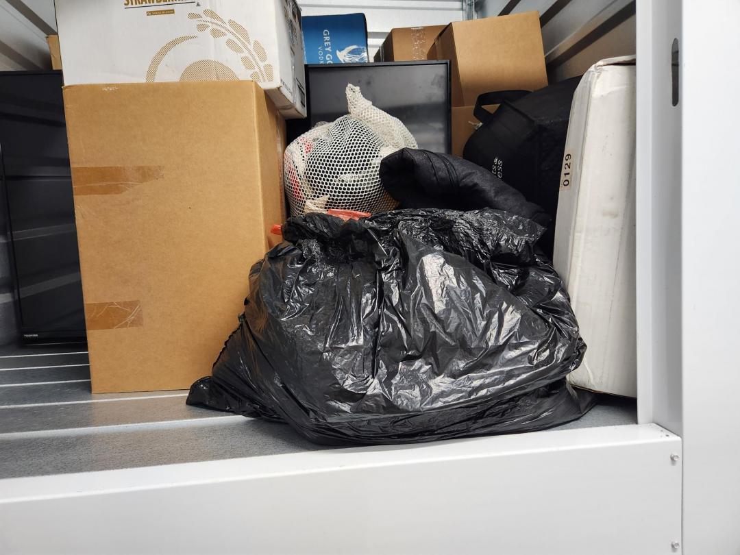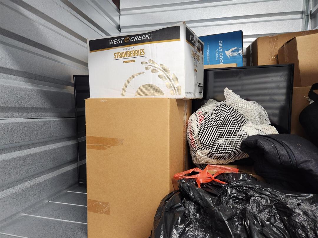 This unit appears to contain…Unit appears to contain, Flat screen tv, misc. boxes and bags