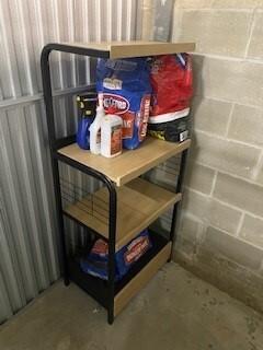 This unit appears to contain…MOP, BOOM, SHOVEL, STAND WITH SHELVES