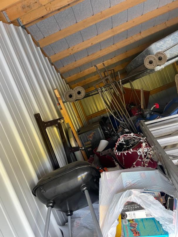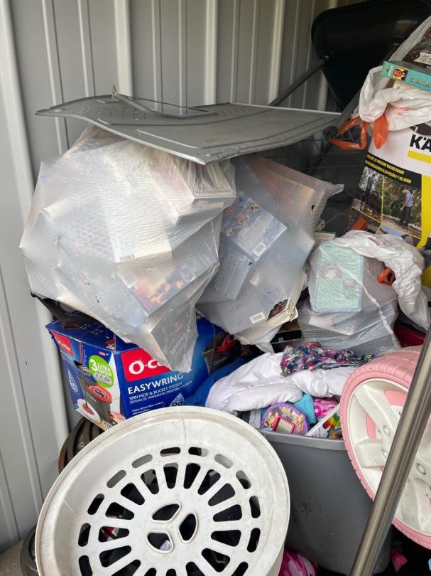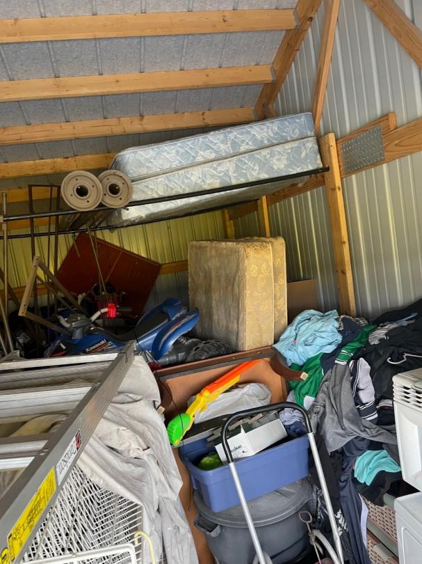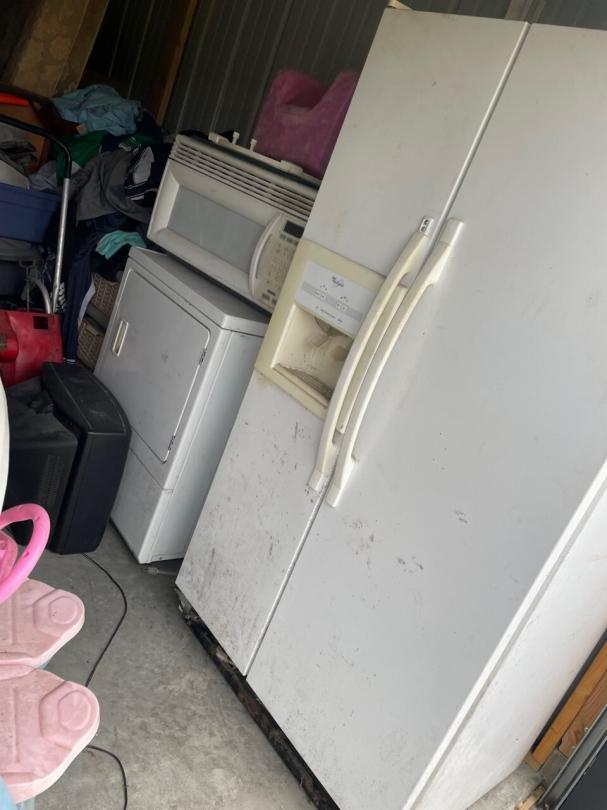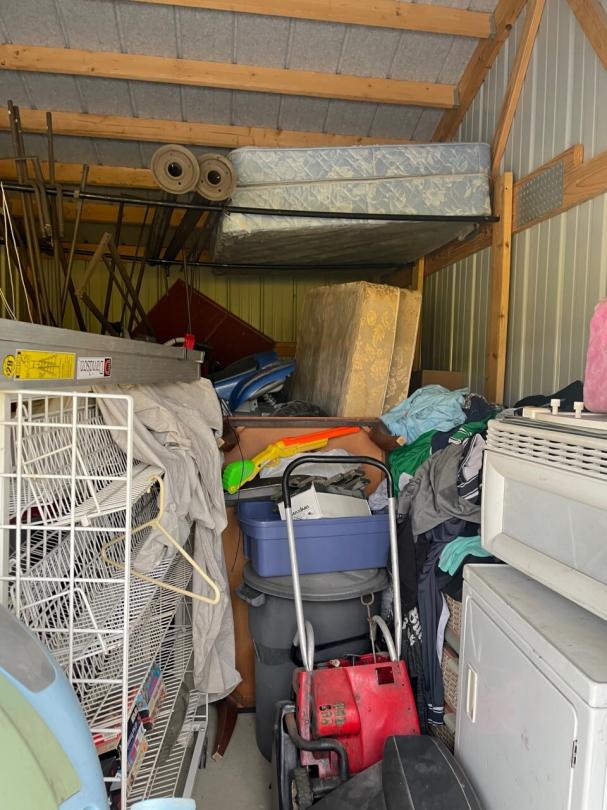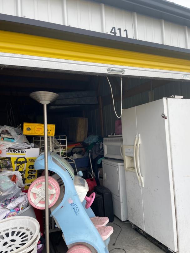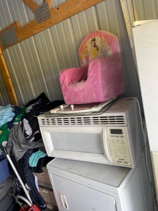This unit appears to contain…Unit appears to contain, fridge, microwave, dryer, kids electric car, pressure washer, girl toys, ladder, mattresses, kids 4 wheeler, display stands, christmas decor, tail gate grill