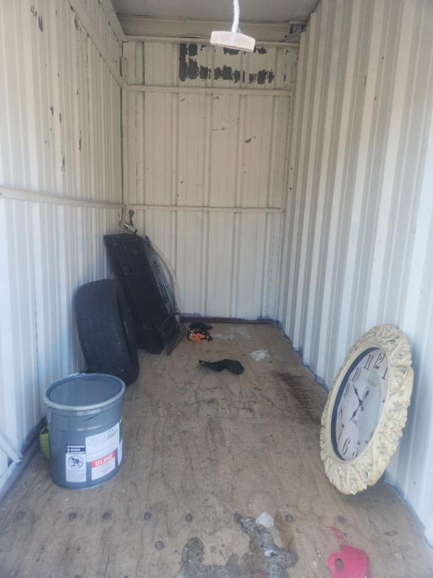 This unit appears to contain…Drive Up Access, Fenced & Gate, Security Cameras, Vehicle Storage pet cage, tire, clock