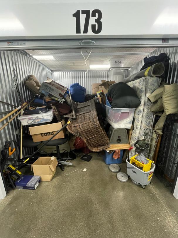 This unit appears to contain…Household items, outdoor furniture, mattress, chairs, outdoor equipment