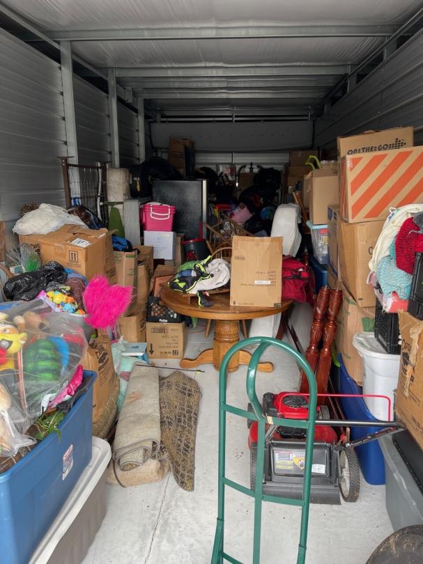 This unit appears to contain…Couches,Mattresses,Bed Frame,Dressers or Armoire,Nightstands,Lamps,Chairs,Tables,Kitchenware,Decor,Plastic Bags,Plastic Containers,Misc. Boxes,Clothing,Misc. Items