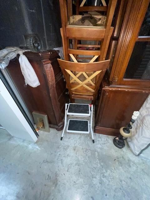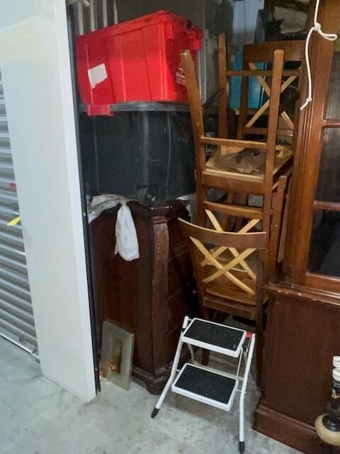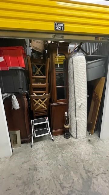 This unit appears to contain…Mirror, China cabinet, Kenmore Elite Refrigerator, Pots and Pans, Ladder, Bags, Bins, Boxes, Chairs, Dresser, Lamps, mattress, Refrigerator.