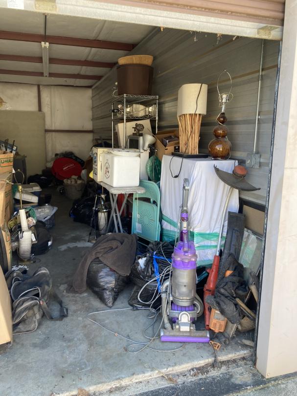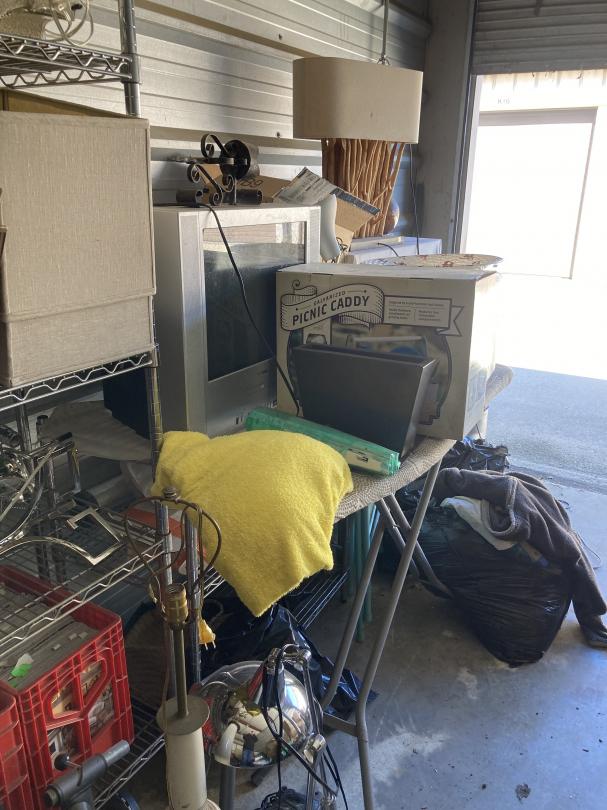 This unit appears to contain…Bags, Boxes, Totes, Vacuum, Shelf, Lamps, Household Items