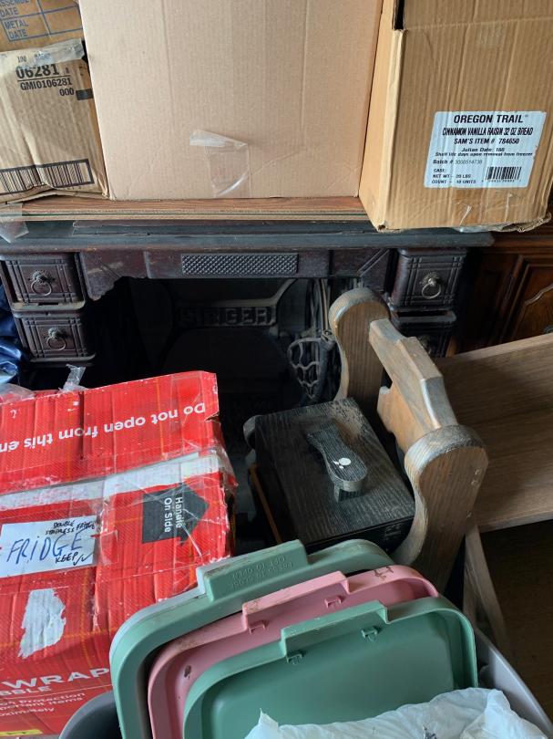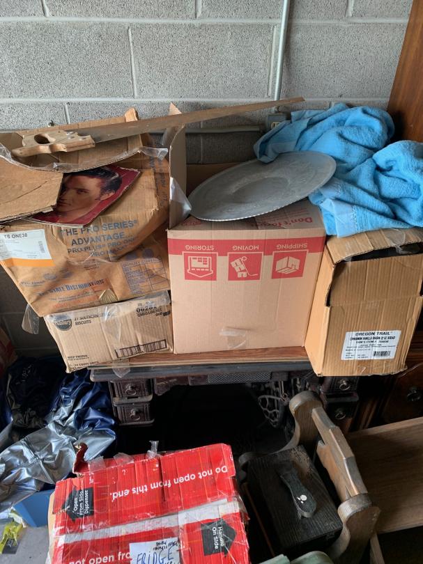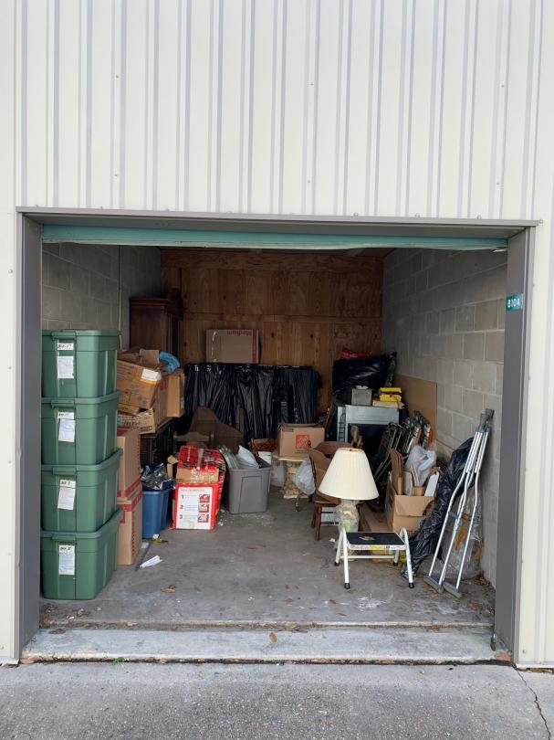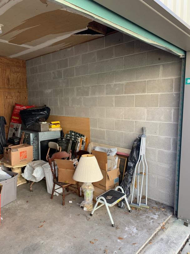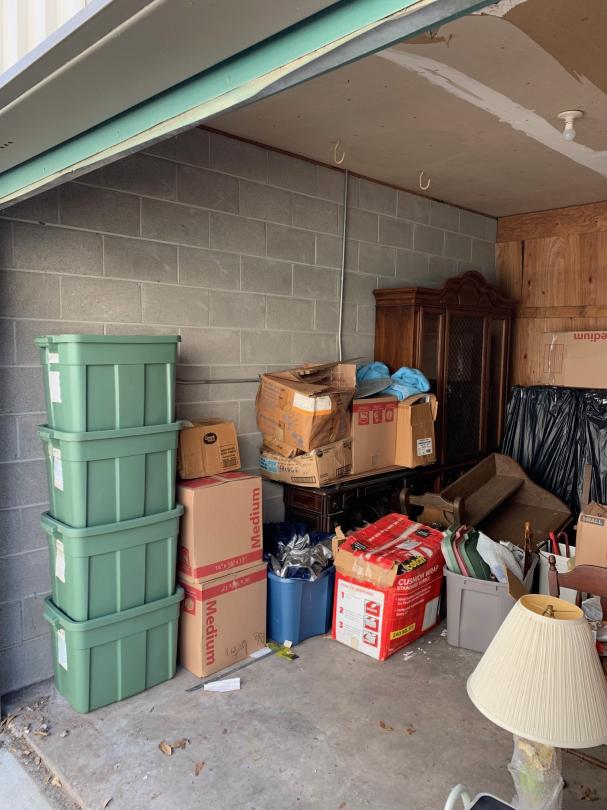 This unit appears to contain…Boxes, Bins, Chairs, Lamp, Household Items