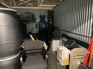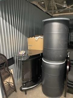 This unit appears to contain…Bar, bar stool, microwave, couch, chairs, totes, cabinets, mirror, rain barrels