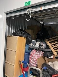 This unit appears to contain…Fan, totes, dolly, salon dryer, boxes, dresser, bags