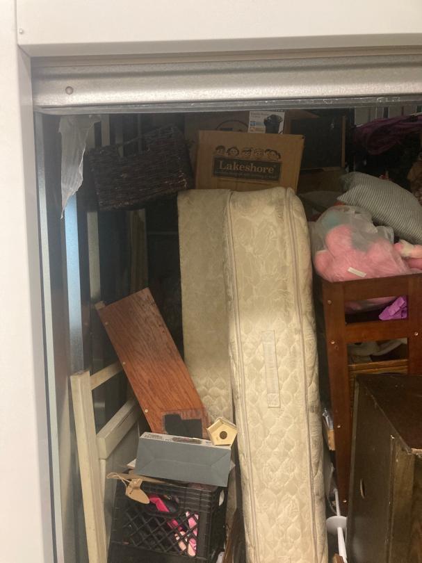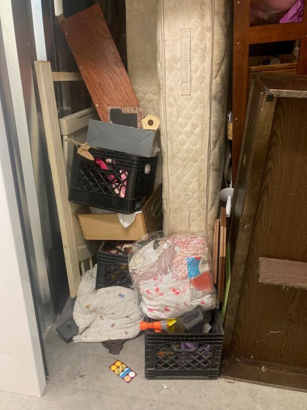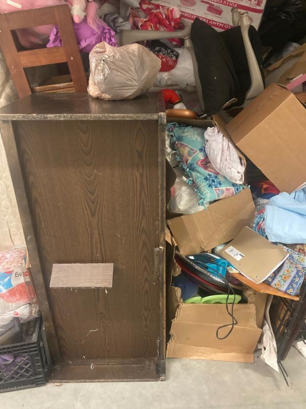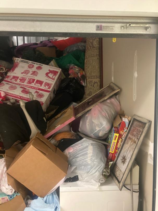 This unit appears to contain…Furniture Washing Machine Boxes Bags Various Items