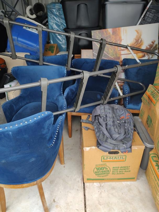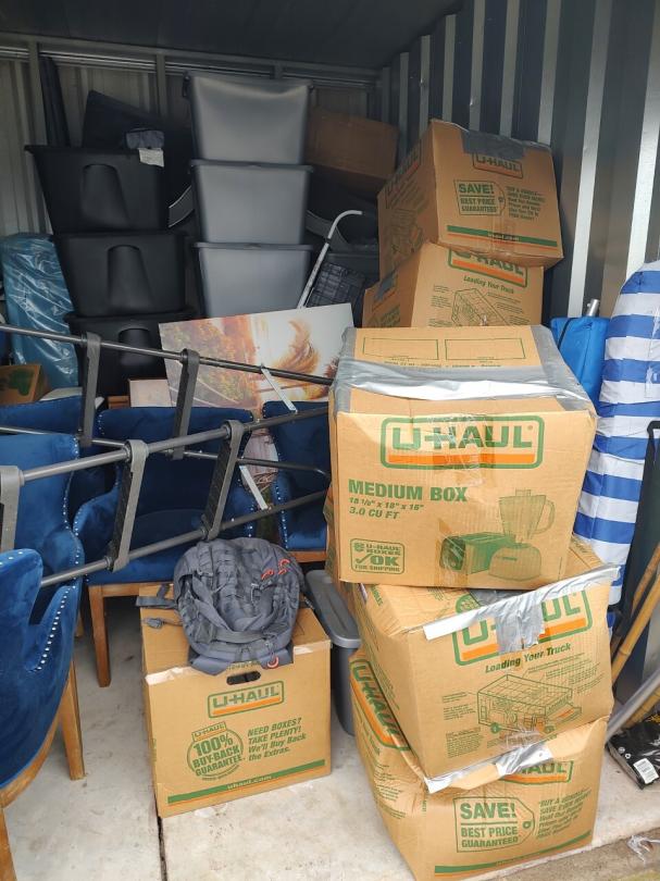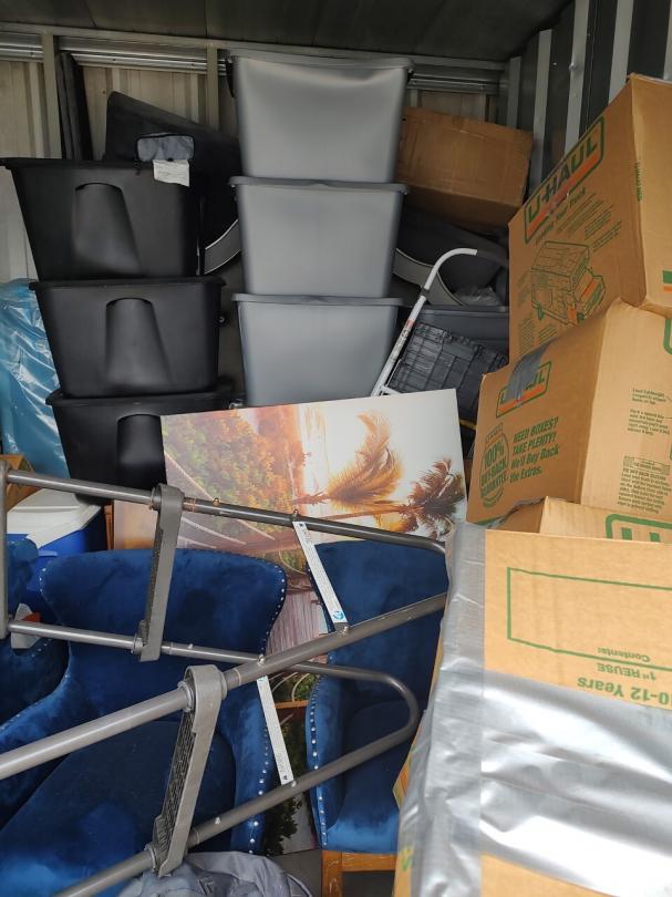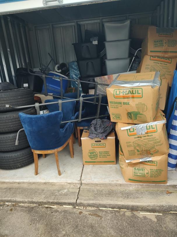 This unit appears to contain…THIS UNIT APPEARS TO CONTAIN: DRESSER, CHAIRS, PLASTIC CONTAINERS, MISCELLANEOUS BOXES, BOOKBAGS, ARTWORK, COOLER,MISCELLANEOUS ITEMS, HEAD BOARD