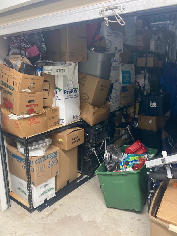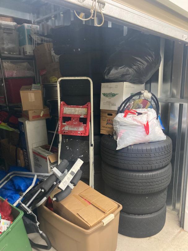 This unit appears to contain…Boxes Plastic totes Tires Mag wheels Various items