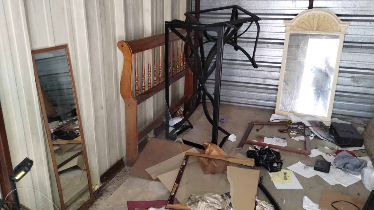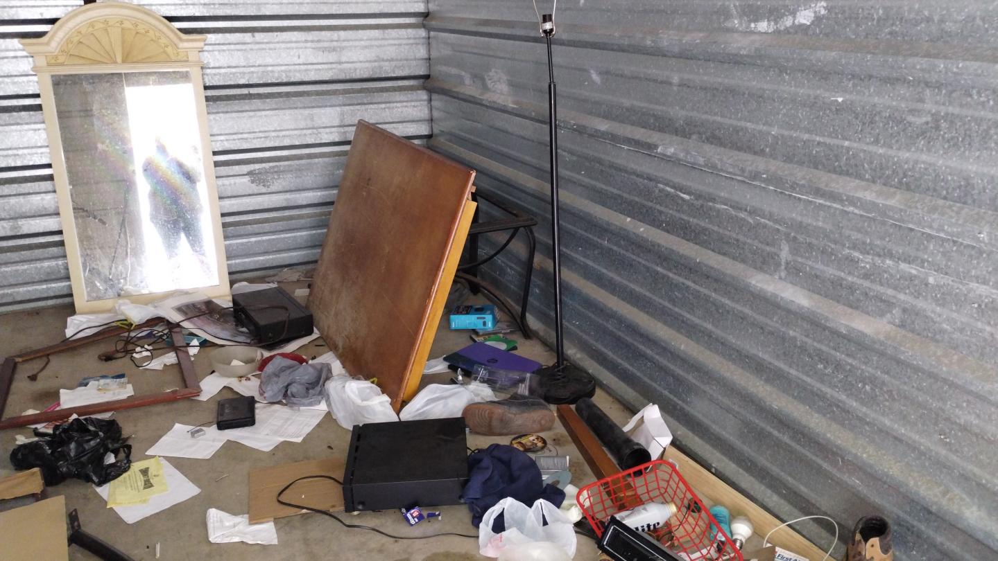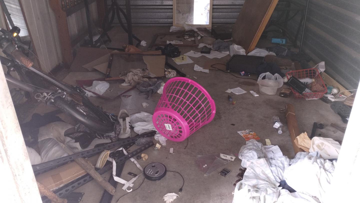 This unit appears to contain…PARTS OF A BIKE, MIRRORS, BASKET, CLOTHES,