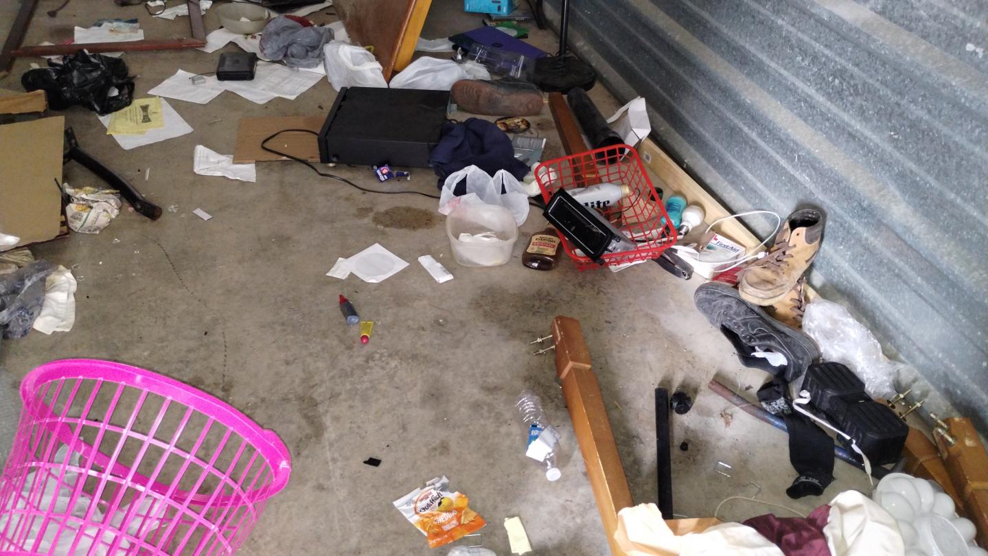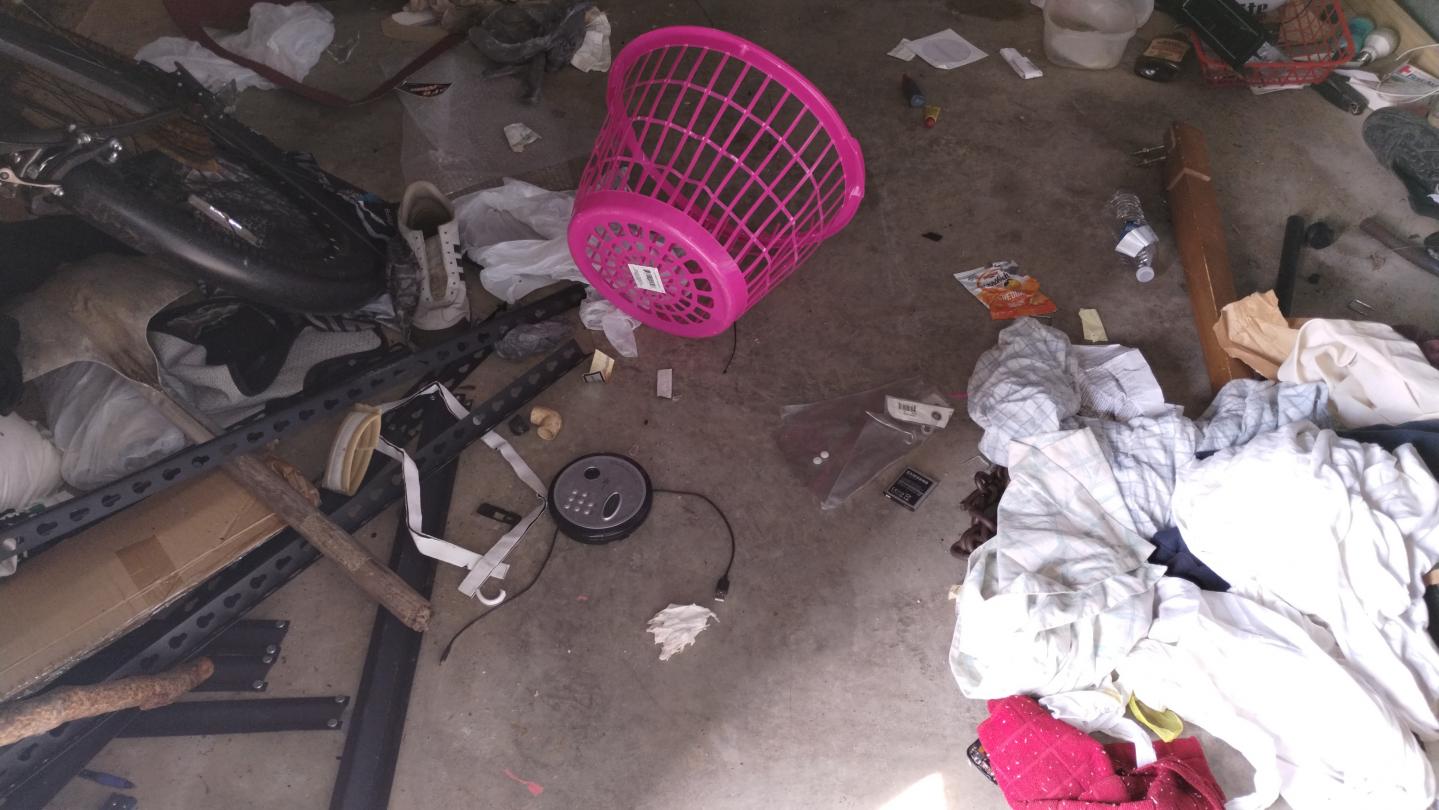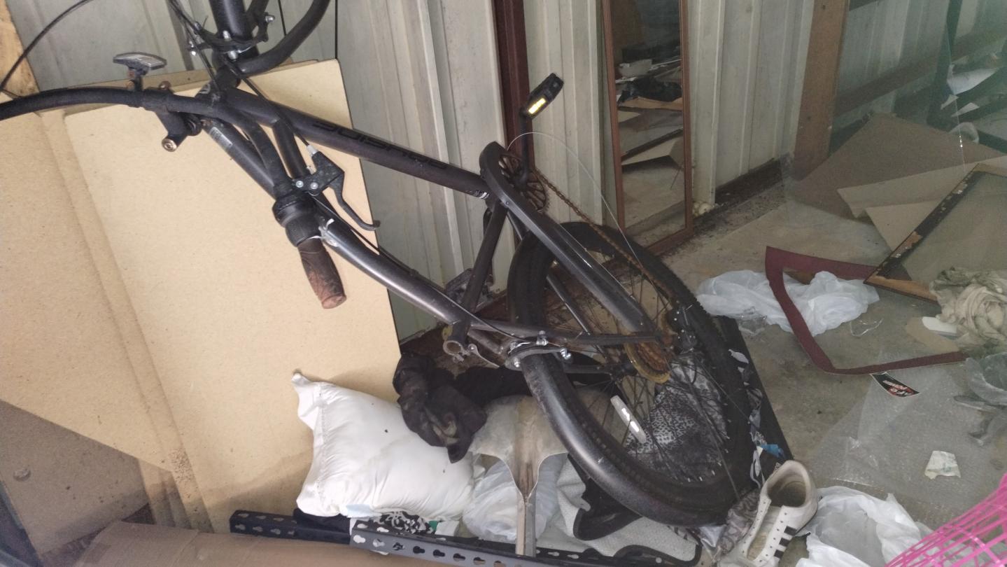 This unit appears to contain…PARTS OF A BIKE, MIRRORS, BASKET, CLOTHES,