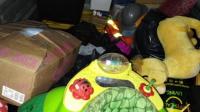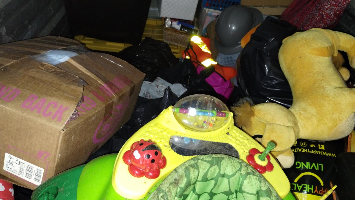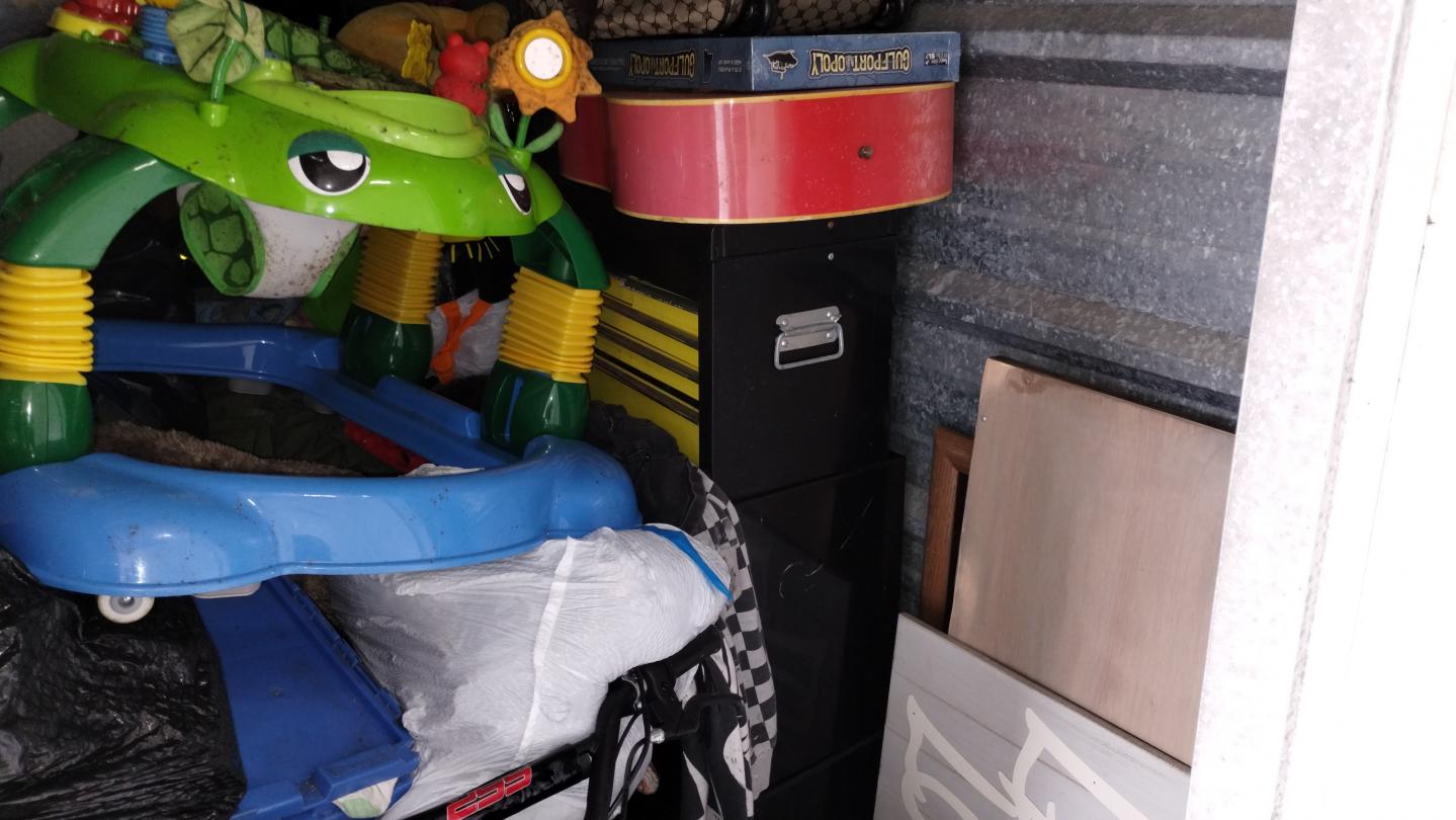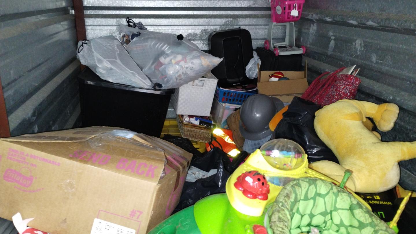 This unit appears to contain…KIDS 4 WHEELER, TOYS, MICROWAVE, TOOL BOX, BOXES, CLOTHES, TOTES,