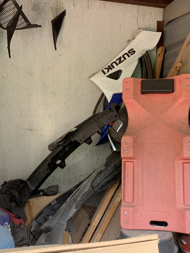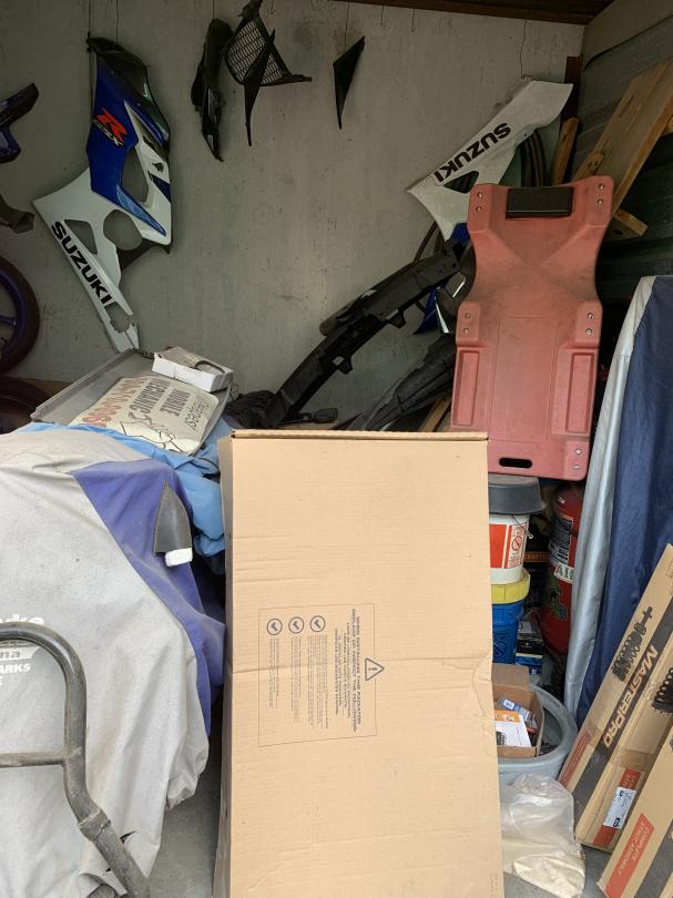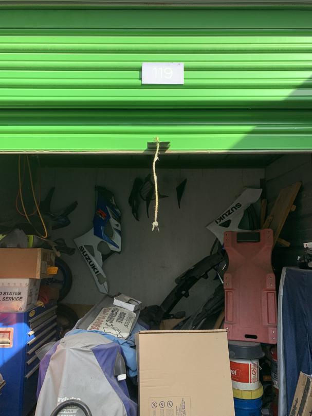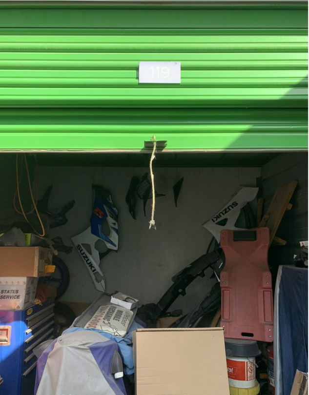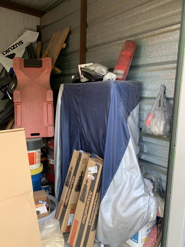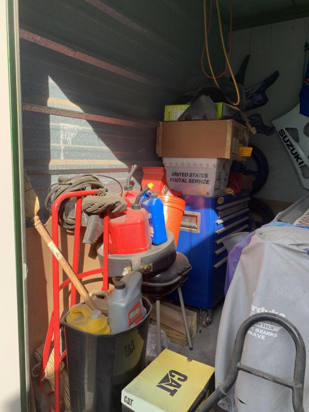 This unit appears to contain…Tools,Motorcyclr parts, bbq pit, air compressor, tool box