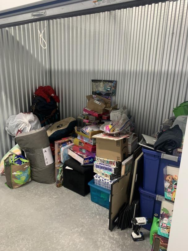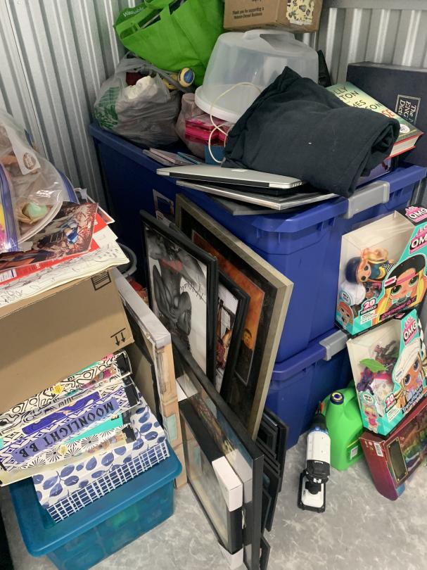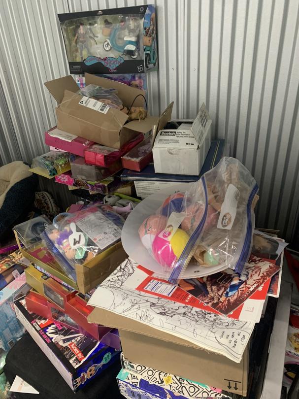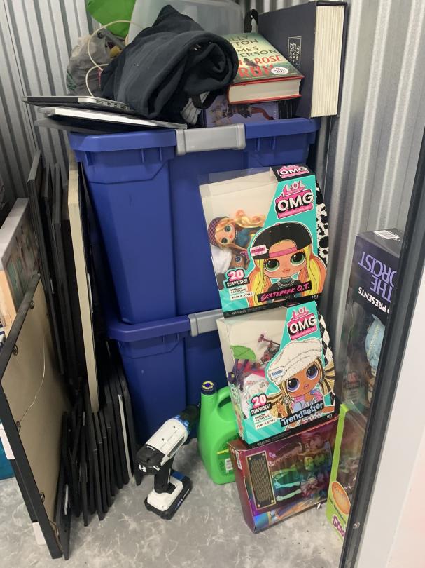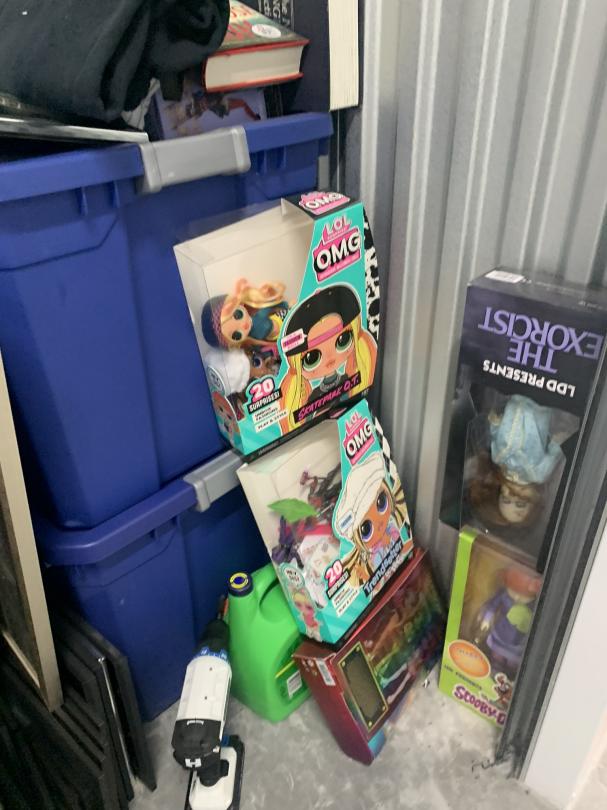 This unit appears to contain…LOL dolls, collector dolls, WWE dolls, Mac book, ipods, dog beds, suitcase, backpack