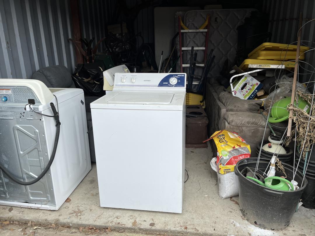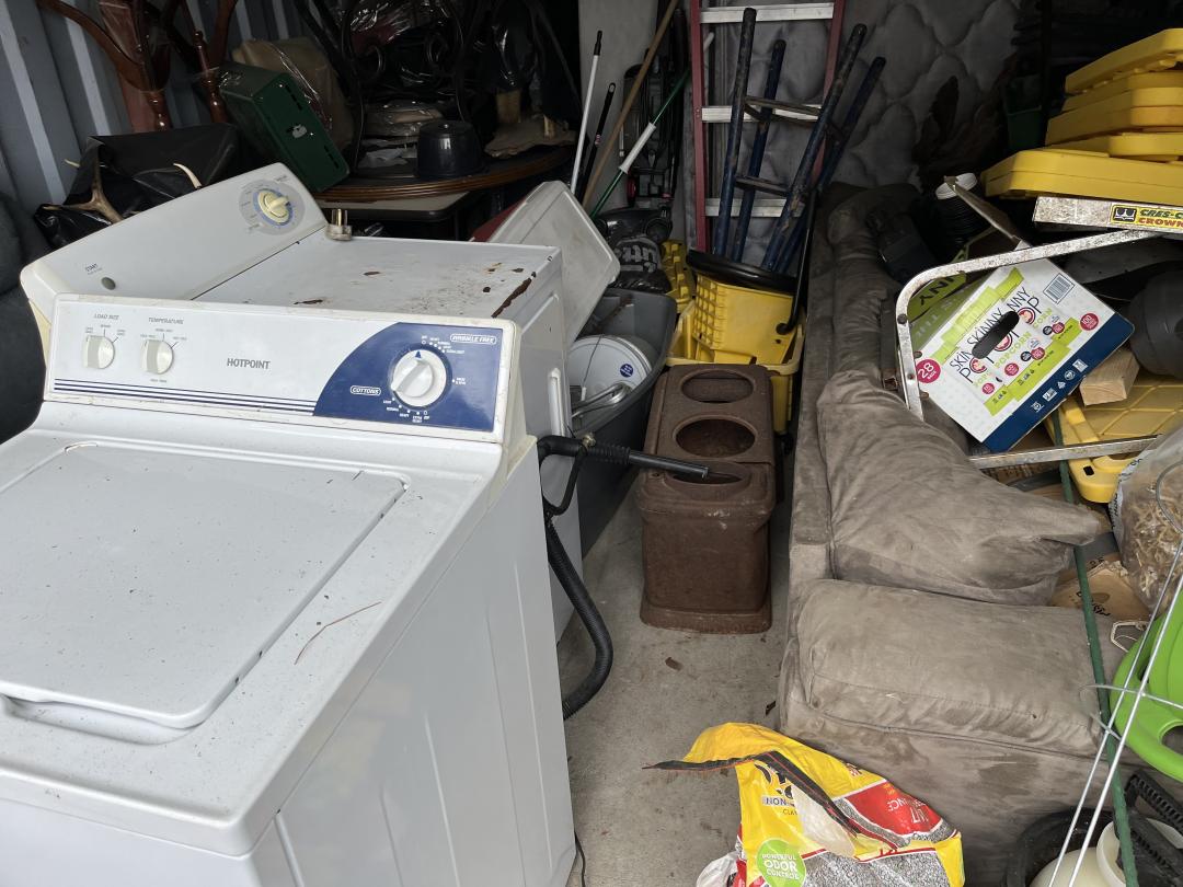 This unit appears to contain…2 STUFFED ANIMAL HEADSDRYER, WASHER, COFFEE TABLES